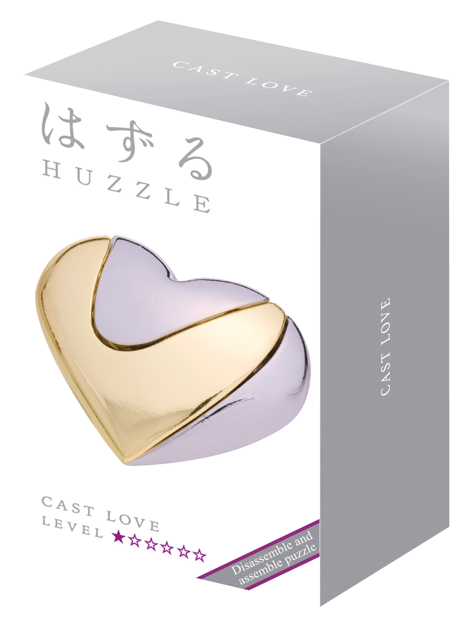 Aufgabe der verzwickten Metallpuzzles ist es, die Teile voneinander zu lösen und wieder zusammen zufügen. Der Name setzt sich zusammen aus 'HUZZLE' von 'to hug and nuzzle' (= umarmen und liebhaben) und 'to cast' (= Metall gießen). Die Puzzles werden aus Gießzink gegossen. Schwierigkeitsgrad 1 Stern.