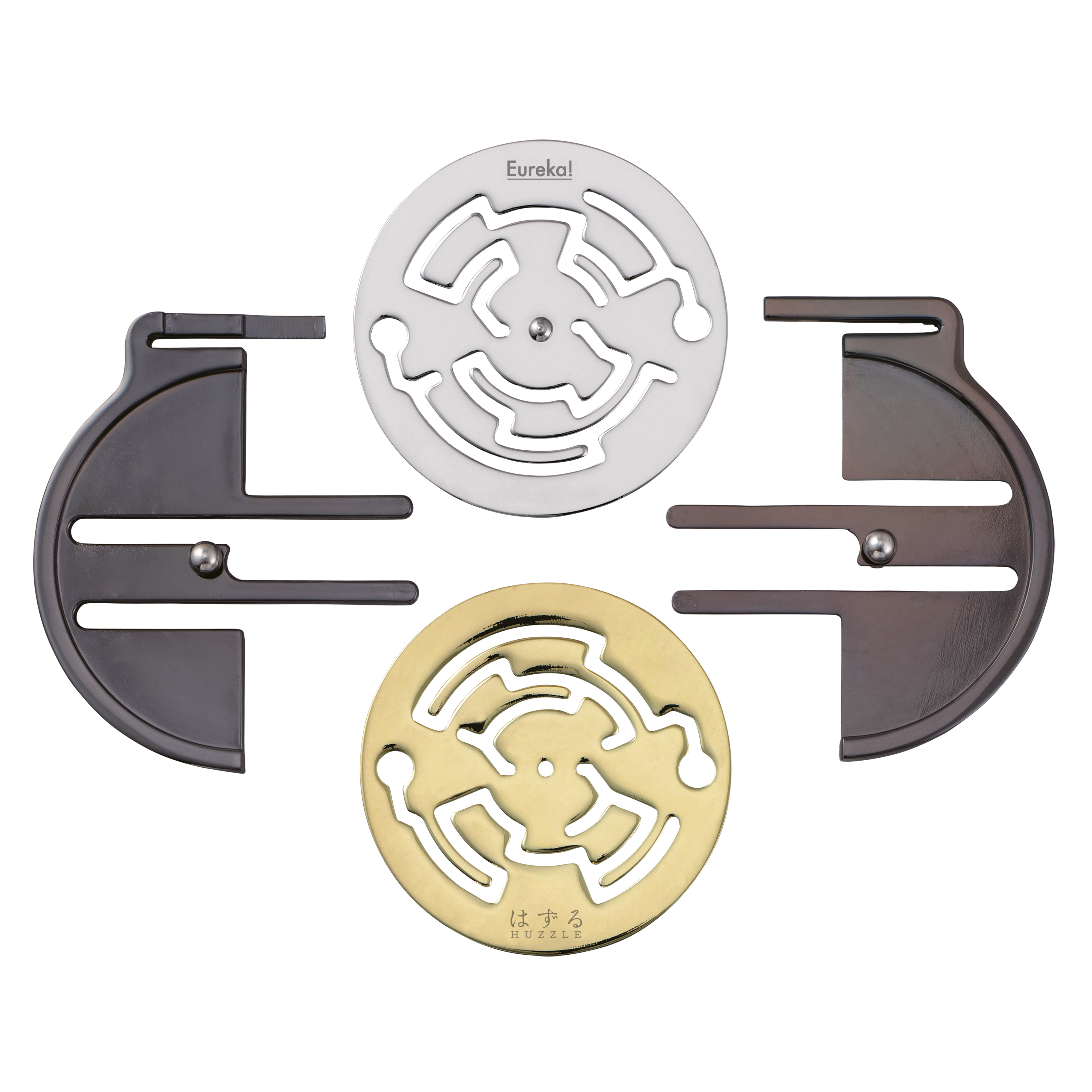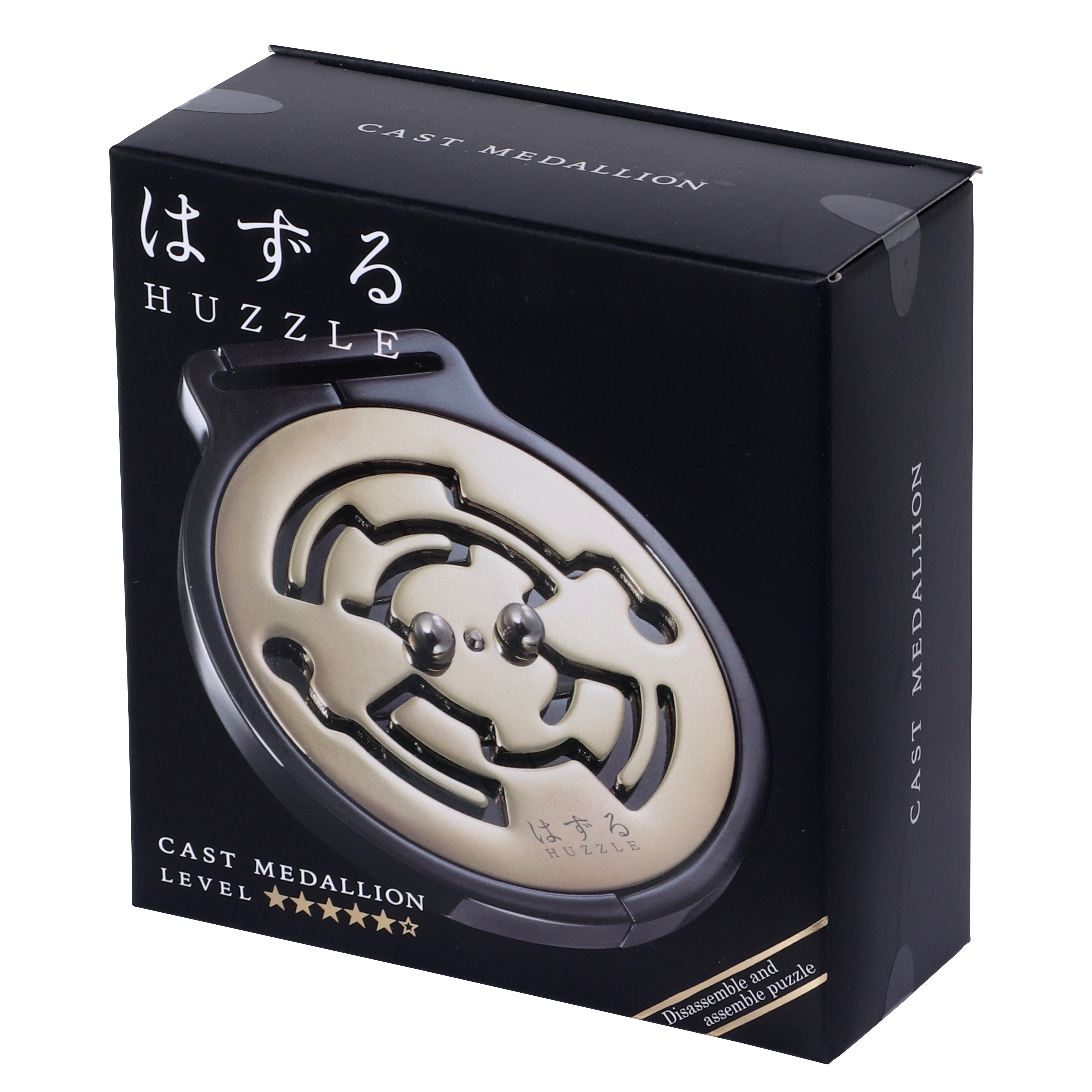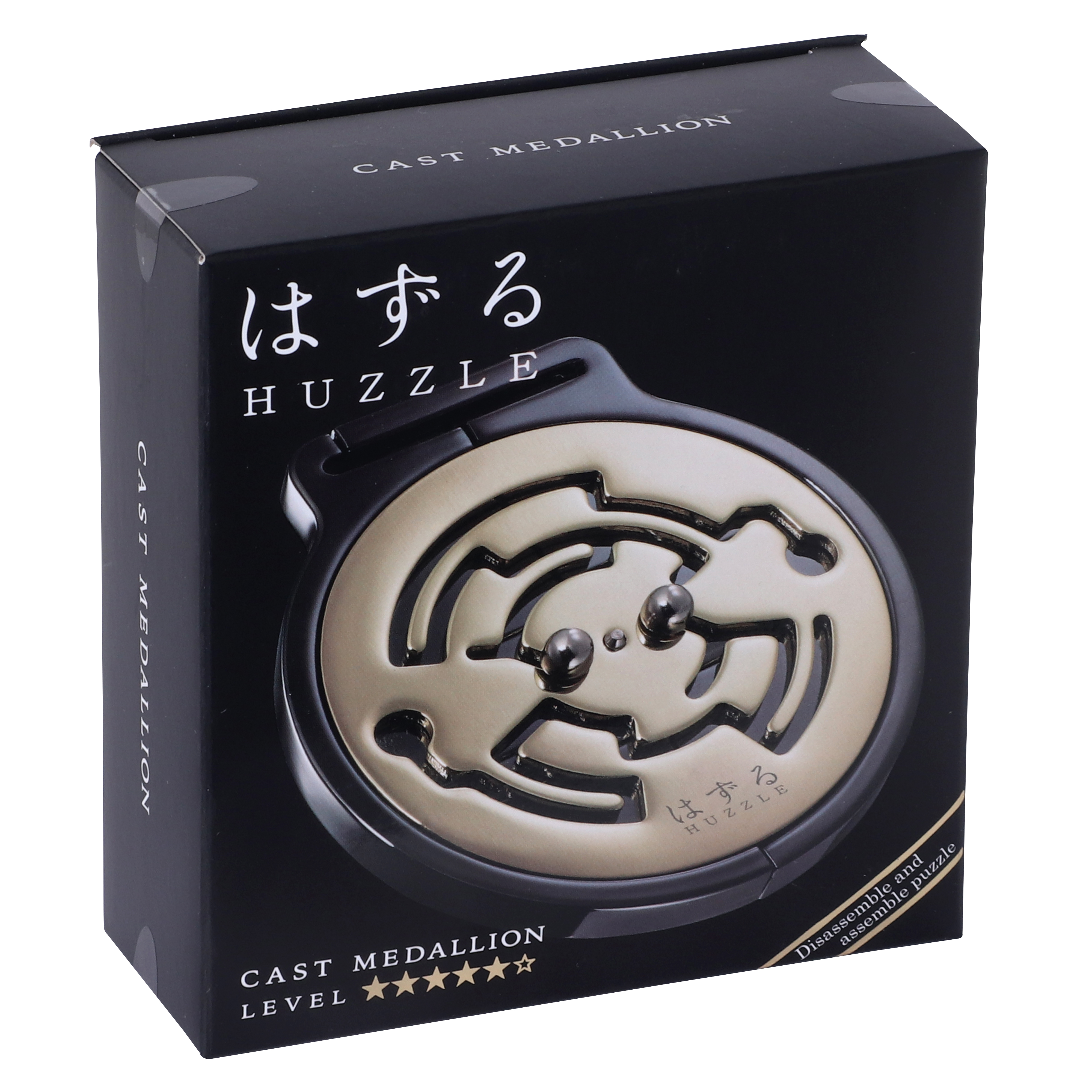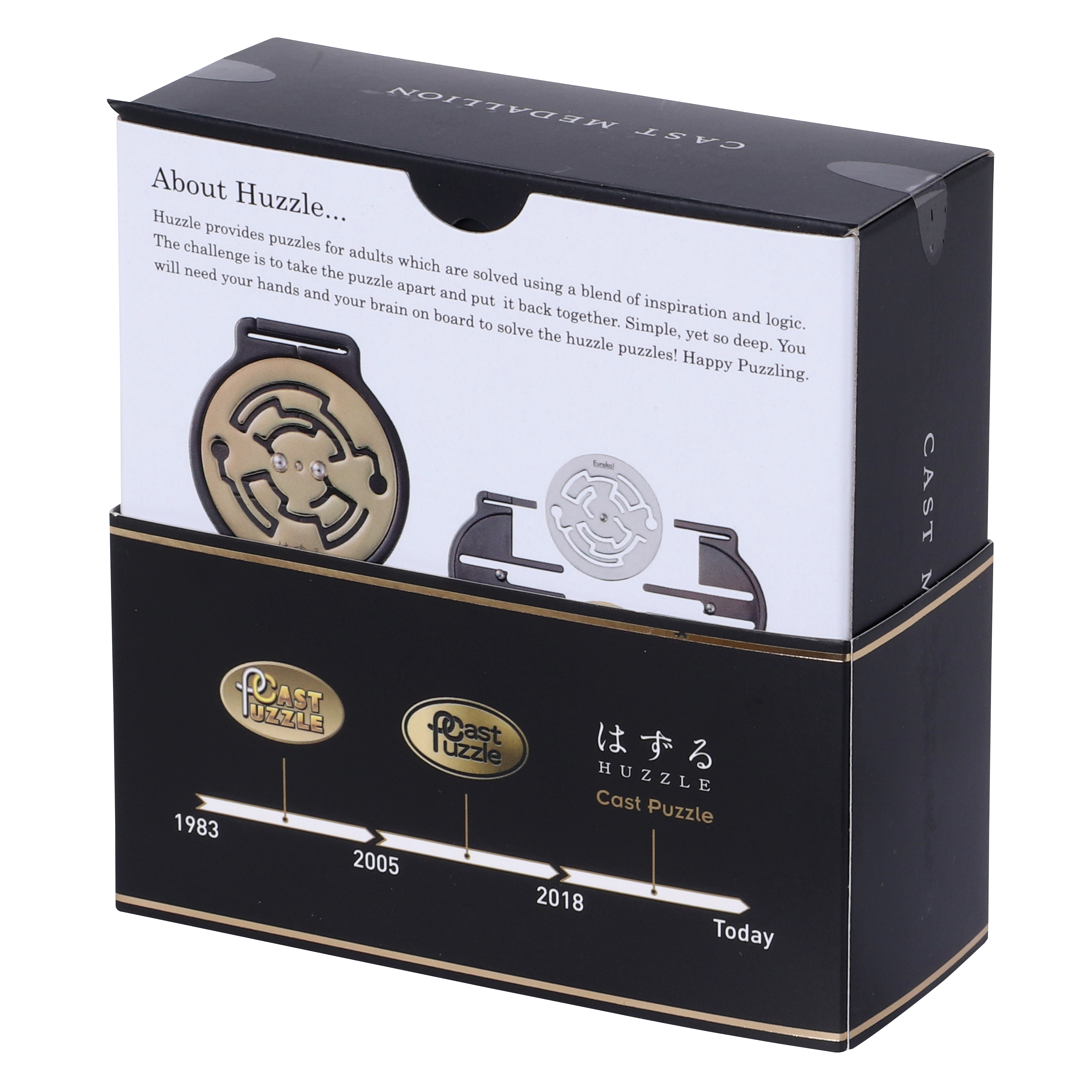 Aufgabe der verzwickten Metallpuzzles ist es, die Teile voneinander zu lösen und wieder zusammen zufügen. Der Name setzt sich zusammen aus 'HUZZLE' von 'to hug and nuzzle' (= umarmen und liebhaben) und 'to cast' (= Metall gießen). Die Puzzles werden aus Gießzink gegossen. Schwierigkeitsgrad 5 Sterne. Extra große Variante zum 40-jährigen Bestehen der Huzzle-Puzzles.