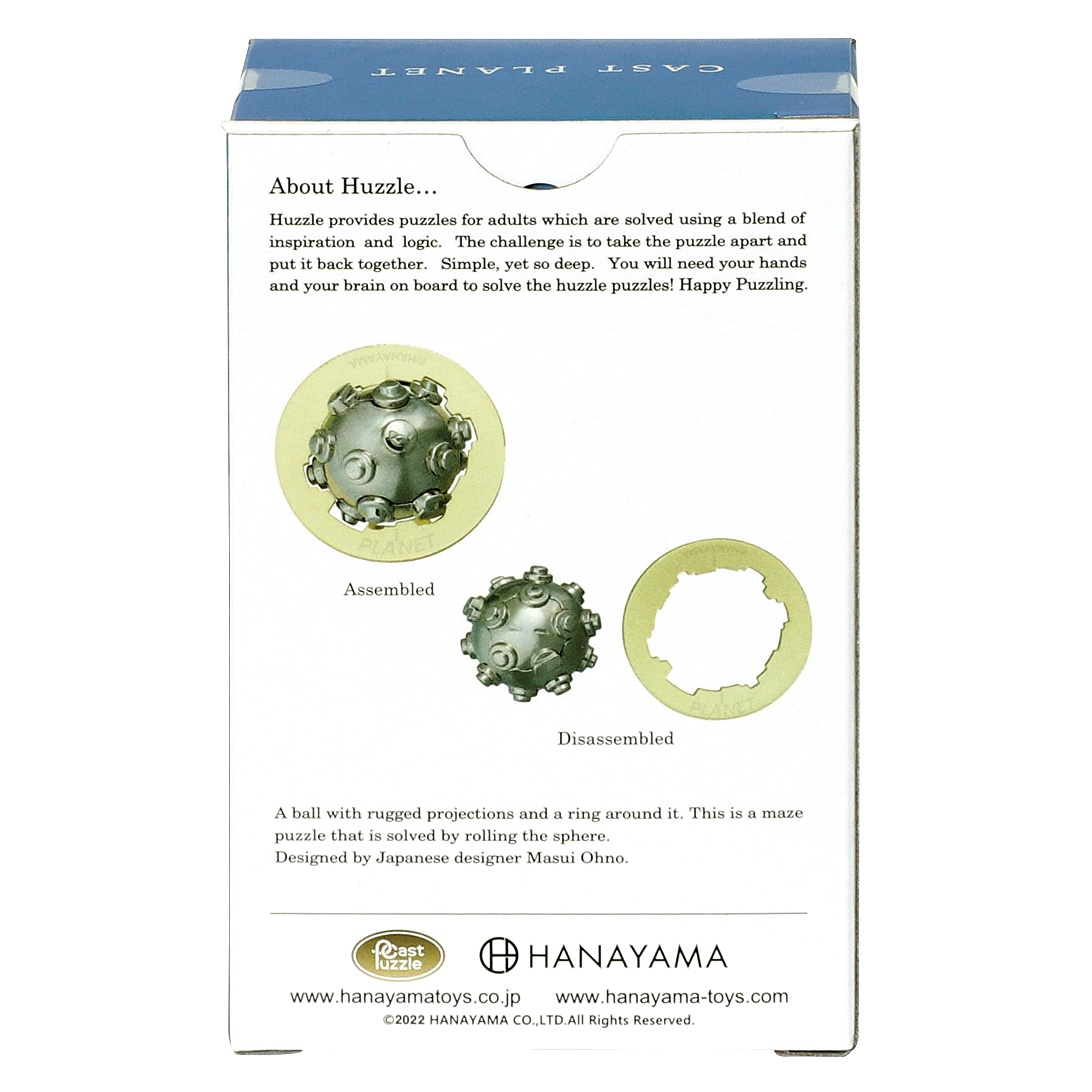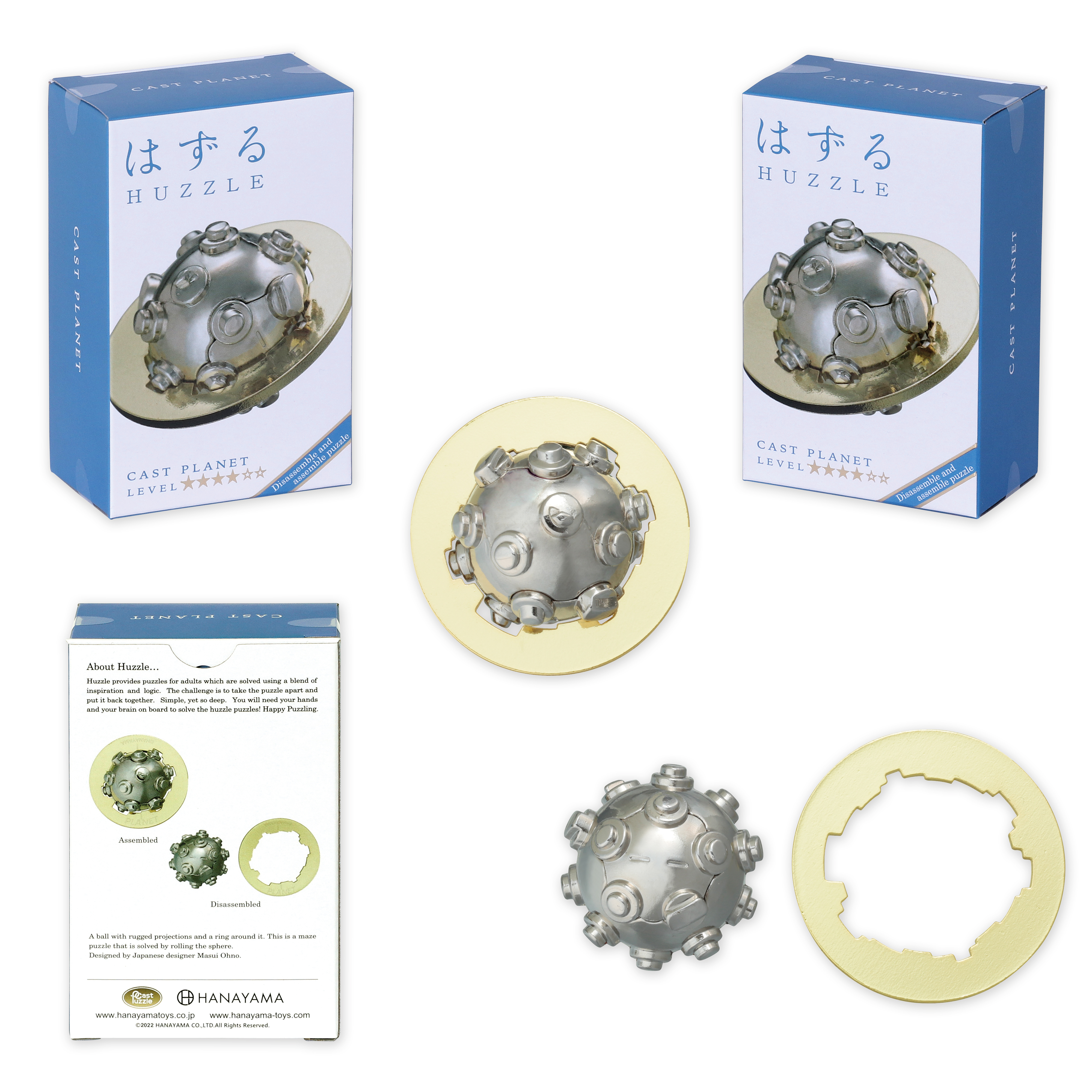 Aufgabe der verzwickten Metallpuzzles ist es, die Teile voneinander zu lösen und wieder zusammen zufügen. Der Name setzt sich zusammen aus 'HUZZLE' von 'to hug and nuzzle' (= umarmen und liebhaben) und 'to cast' (= Metall gießen). Die Puzzles werden aus Gießzink gegossen. Schwierigkeitsgrad 4 Sterne.