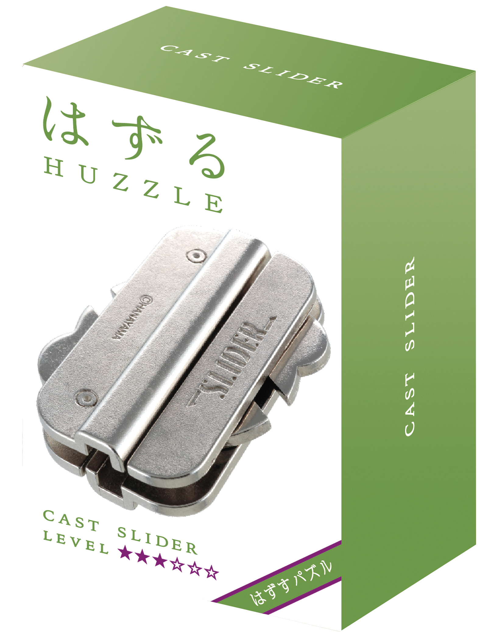 Aufgabe der verzwickten Metallpuzzles ist es, die Teile voneinander zu lösen und wieder zusammen zufügen. Der Name setzt sich zusammen aus 'HUZZLE' von 'to hug and nuzzle' (= umarmen und liebhaben) und 'to cast' (= Metall gießen). Die Puzzles werden aus Gießzink gegossen. Schwierigkeitsgrad 3 Sterne.