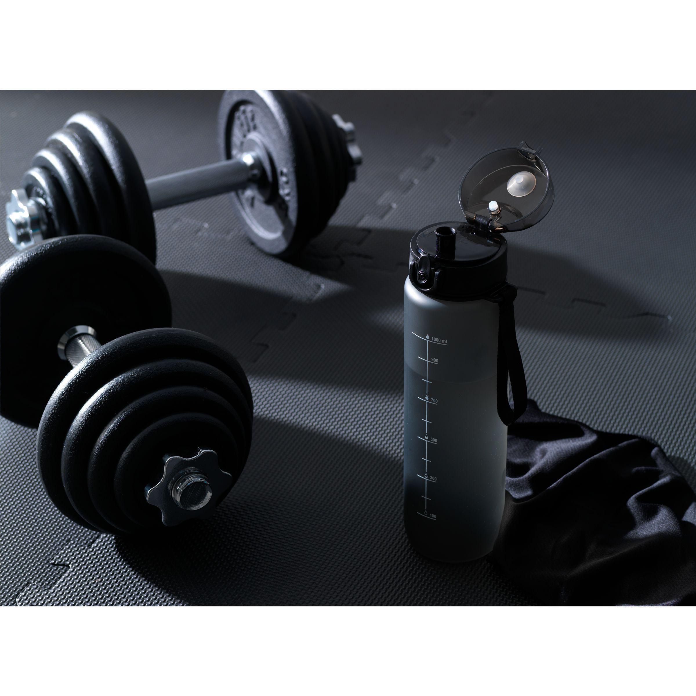 Mit dieser matt-transparenten Wasserflasche aus PCTG SK-Kunststoff sind Sie immer gut hydriert. Die Flasche hat einen Auslaufsicheren Schraubverschluss und eine praktische Trageschlaufe. Der Kugelschreiber hat eine Trinktülle und ist mit einem transparenten Deckel mit Druckknopf und Verriegelung hygienisch verschlossen. Der Inhalt ist in ml und oz angegeben. Nicht spülmaschinengeeignet. Der perfekte Begleiter für zu Hause, bei der Arbeit oder unterwegs und ein praktischer Anreiz, mehr Wasser zu trinken. Fassungsvermögen 1.000 ml.