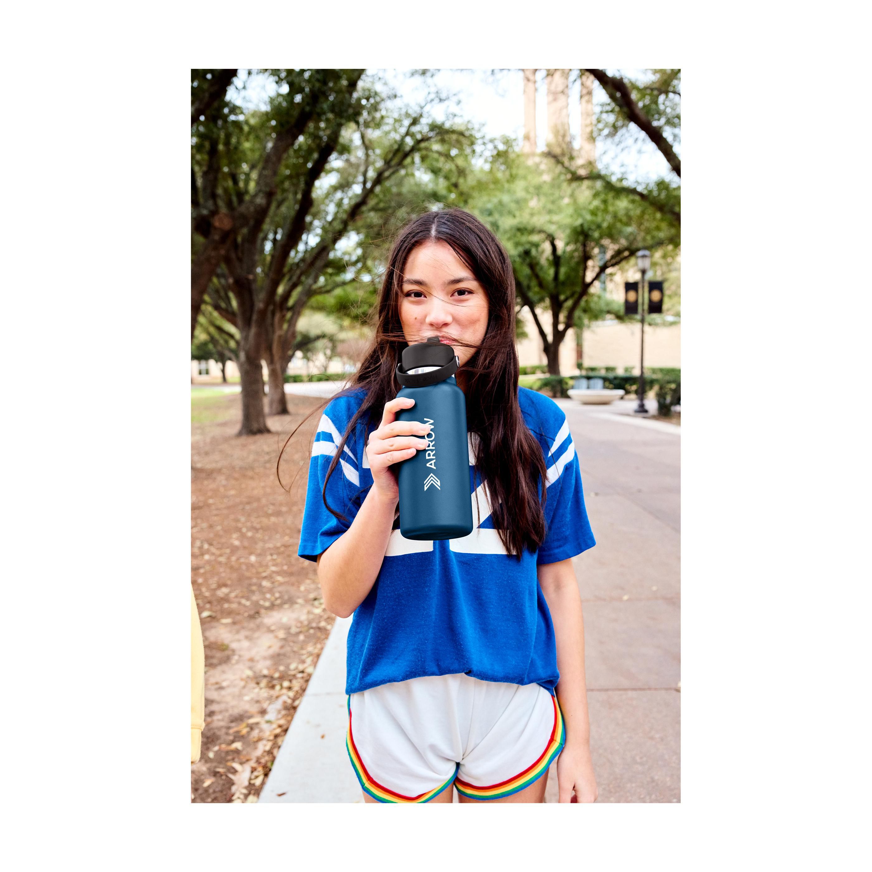 Wiederverwendbare, doppelwandige Trinkflasche der Marke Hydro Flask. Die Flasche ist aus hochwertigem Edelstahl gefertigt und mit einer schönen Pulverbeschichtung versehen. Ausgestattet mit einem flexiblen Kunststoff-Schraubverschluss mit Tragering und Strohhalm mit Trinköffnung. Einfach mit einer Hand zu öffnen und zu schließen. Auffällig ist die großzügige Trinköffnung. Dadurch ist die Flasche leicht zu reinigen und für die Zugabe von Eiswürfeln geeignet.Die einzigartige TempShield®-Doppelwand-Vakuumisolierung hält kalte Getränke bis zu 24 Stunden lang kühl. Nicht für heiße Flüssigkeiten geeignet. Auslaufsicher. Spülmaschinenfest. Um den Aufdruck zu erhalten, wird Handwäsche empfohlen. Für den täglichen Gebrauch konzipiert und leicht zu transportieren. Ideal für im Auto, im Fitnessstudio, bei der Arbeit oder in der Schule. Fassungsvermögen 946 ml.