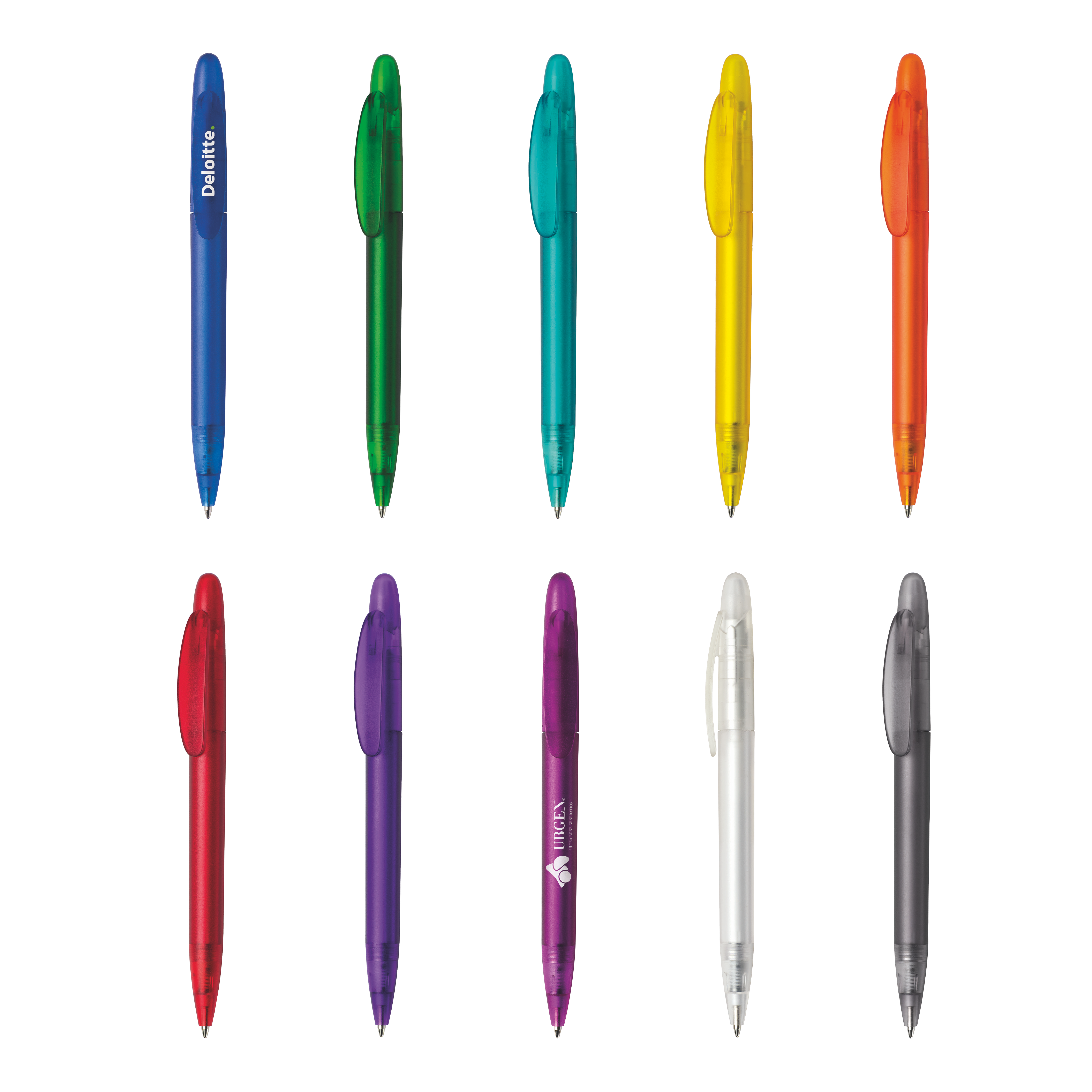 ICON IC400 FROST Kugelschreiber Maxema, Die Herausforderung ist gelungen : entstanden ist der ICON - ein zeitloses Design, das die Grenzen der kurzlebigen Trends endlich überwunden hat! Das Gehäuse aus ABS ist in halbdurchsichtiger Frosty-Optik gefertigt und in 10 unterschiedlichen Farben lieferbar, die bereits ab 2.000 Stück in Ober- und Unterteil miteinander kombinierbar sind. Er ist ausgestattet mit einer blauschreibenden Großraummine.