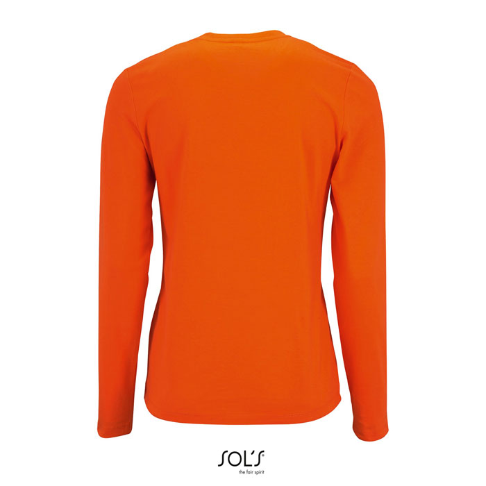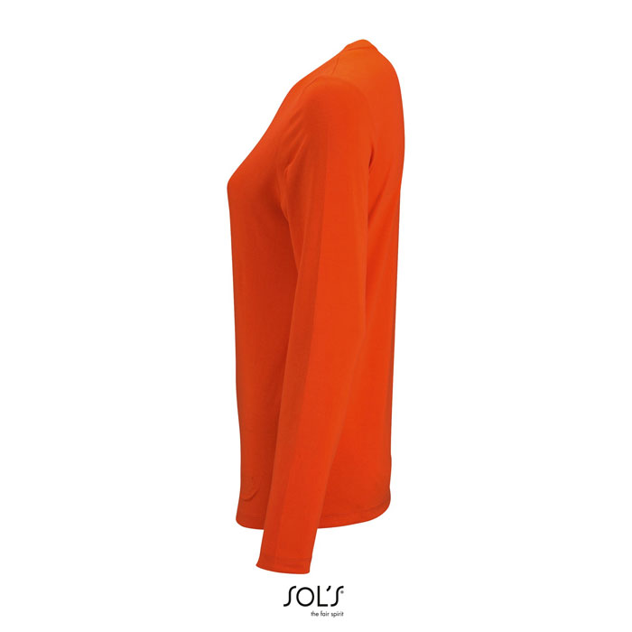 SOL'S IMPERIAL Damen T-Shirt 190g. Verstärktes Nackenband. Rippkragen. Rundhalsausschnitt. Langarm. Seitennähte. Taillierter Schnitt. Material: 100% halbgekämmte Baumwolle Ringspun. OEKO-TEX®. Verkauf nur inklusive Werbeanbringung.