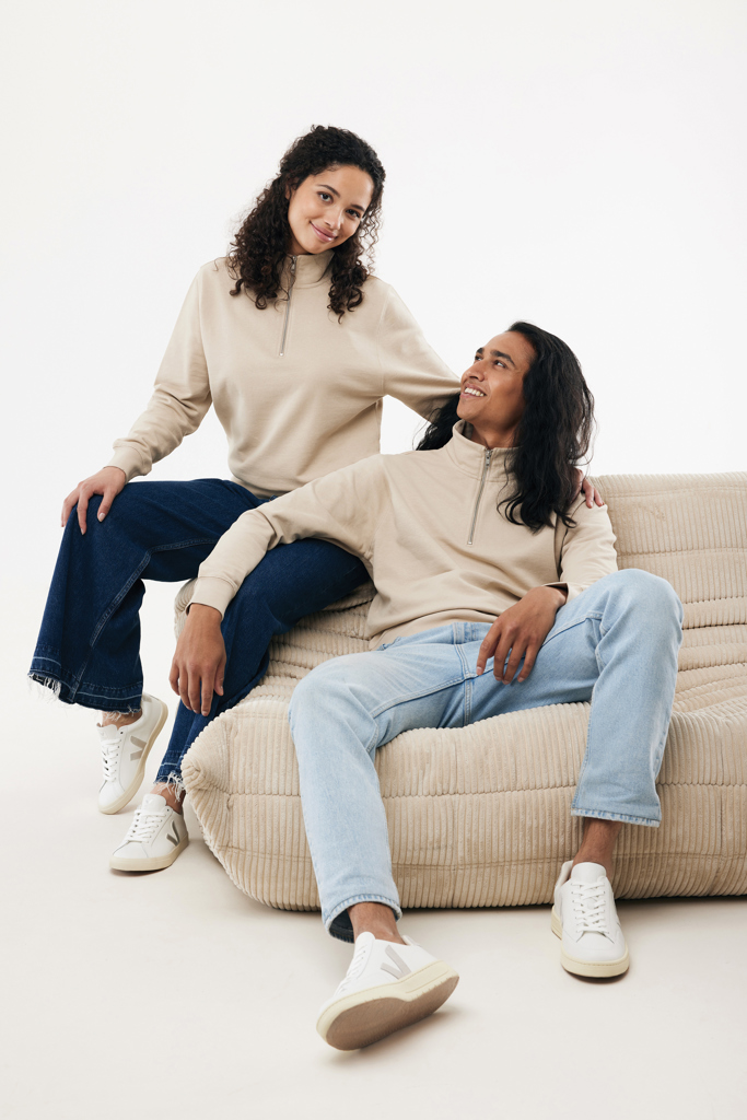 Unisex-Pullover Modern-Fit und Quarter-Zip aus 100% Baumwolle, davon 30% recycelt und 70% Bio-Baumwolle, 300g / m². Der Pullover mit Quarter-Zip hat einen Kragen aus dem gleichen Material, eingesetzte lange Ärmel und 1 x 1-Rippbündchen an den Ärmelenden und am Saum. Die Innenseite des Stoffes ist French Terry. Die Verwendung von tatsächlich recycelten und biologischen Stoffen sowie die Angaben zur Umweltverträglichkeit werden durch den innovativen physikalischen AWARE™ Tracer und Blockchain-Technologie garantiert. Durch Scannen des QR-Codes erhalten Sie Zugang zu einem speziellen digitalen Pass für das Produkt. 2% des Erlöses jedes verkauften Produkts werden an Water. org gespendet. Dieses Produkt ist nach OEKO-TEX® STANDARD 100 Centexbel zertifiziert. Aufgrund der Beschaffenheit von recycelten Garnen können leichte Verunreinigungen und Farbabweichungen auftreten.