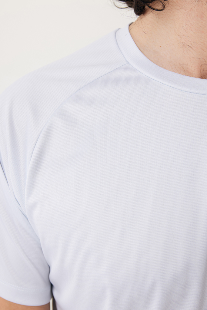Unisex Medium-Fit Sport-T-Shirt aus 100% recyceltem Polyester (150gr / m²). Dieses Active-Wear-T-Shirt ist aus hochwertigem Mini-Ribstop-Gewebe mit schnelltrocknender Technologie gefertigt und eignet sich daher für zahlreiche Sportarten. Das T-Shirt hat Raglanärmel und einen Rundhalsausschnitt. Die Verwendung von tatsächlich recycelten Stoffen und die Umweltverträglichkeit werden durch die Verwendung der disruptiven AWARE™- und Blockchain-Technologie garantiert. Durch Scannen des QR-Codes erhalten Sie Zugang zu einem speziellen digitalen Produktpass des Produkts. 2% des Erlöses jedes verkauften Produkts werden an Water. org gespendet.