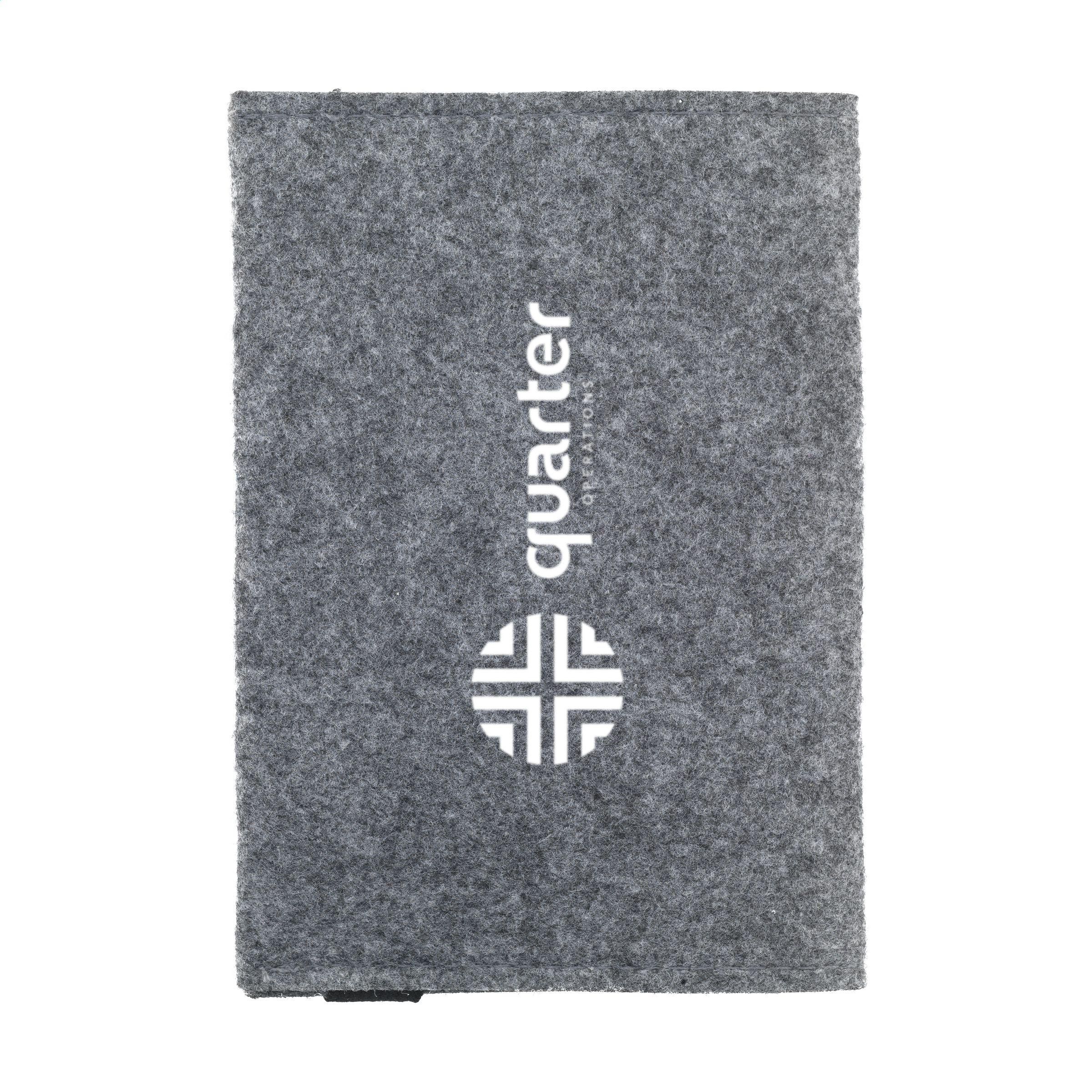 Ausweishülle aus RPET-Filz (hergestellt aus recycelten PET-Flaschen und recycelten Textilien). Mit Platz zum Aufbewahren von Karten und ausgestattet mit einem Verschlussgummi. Geeignet für die Aufbewahrung, den Transport und den Schutz Ihres Reisepasses. GRS-zertifiziert. Recyceltes Material insgesamt: 92%.
