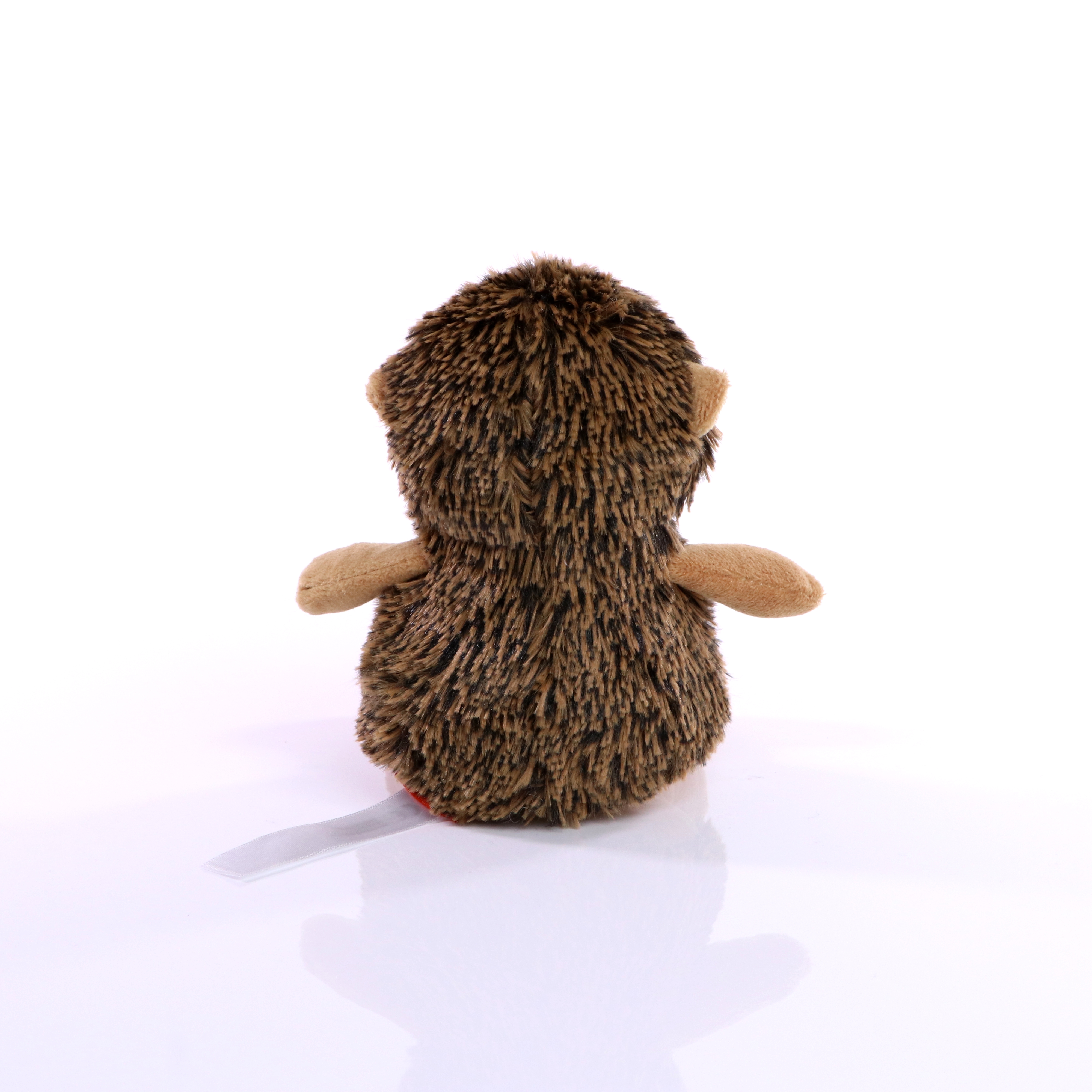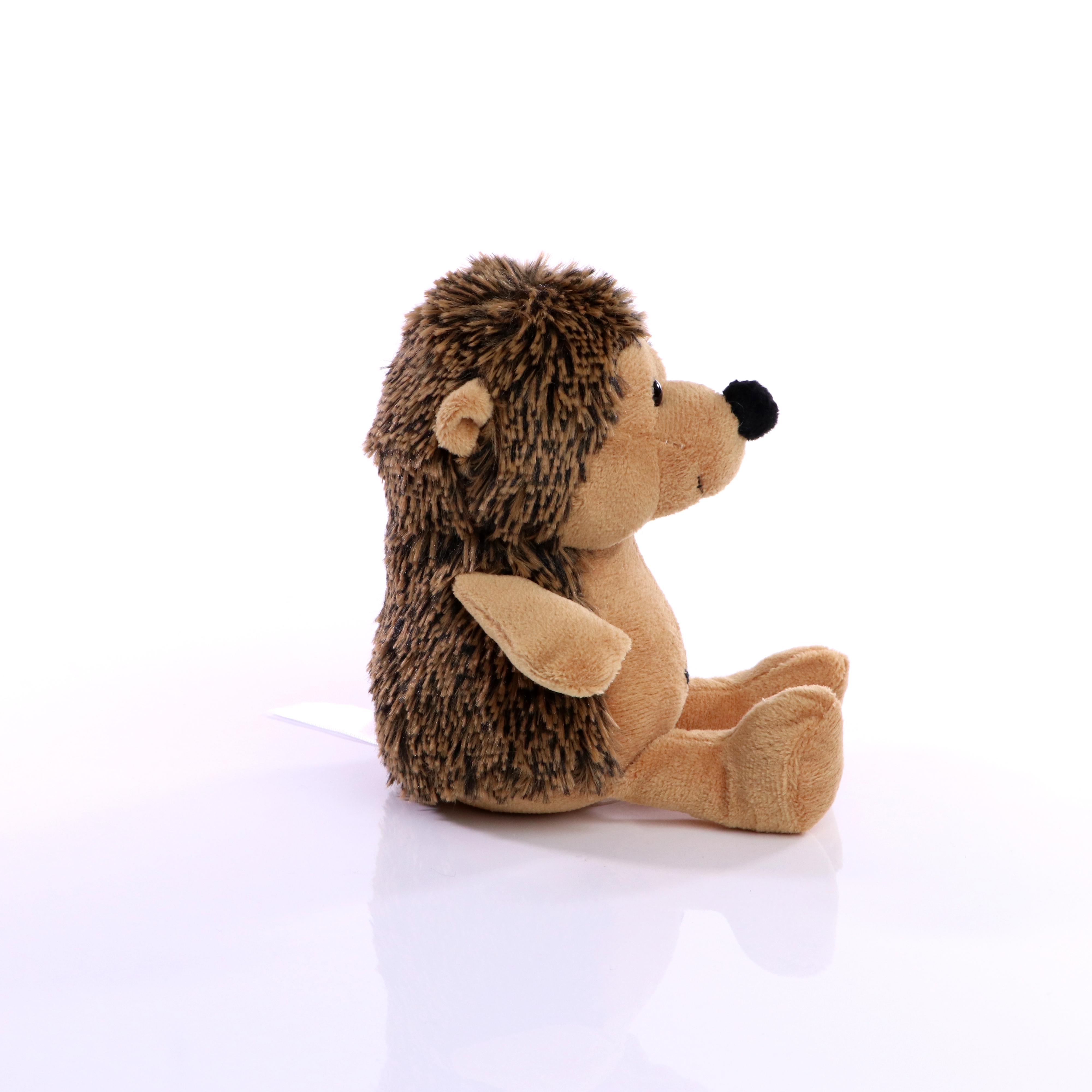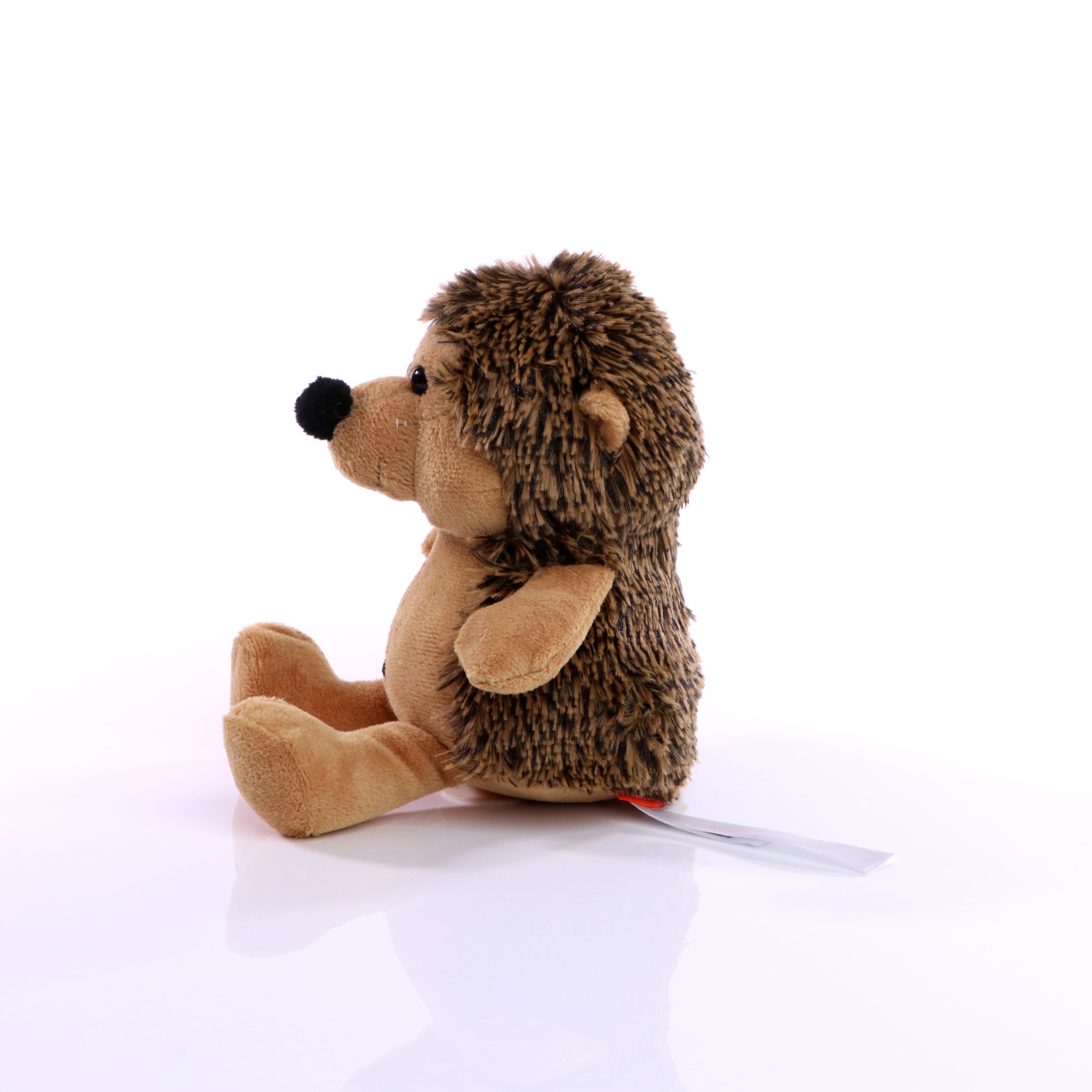 Unser Carsten rollt sich nicht zusammen, denn er hat keine Angst vor Kuscheleinheiten. Eigentlich haben Igel ja nur am Bauch und Gesicht Haare, rund um die immer feuchte Nase (die bei Carsten äußerst prägnant ist), um die dunklen Knopfaugen und um die Ohren herum, der Rest ist stachelig. Aber seine Stacheln tun natürlich nur so als ob: Langer Plüsch in zwei Farben sorgt durch die Melierung für den "Stachel-Look".