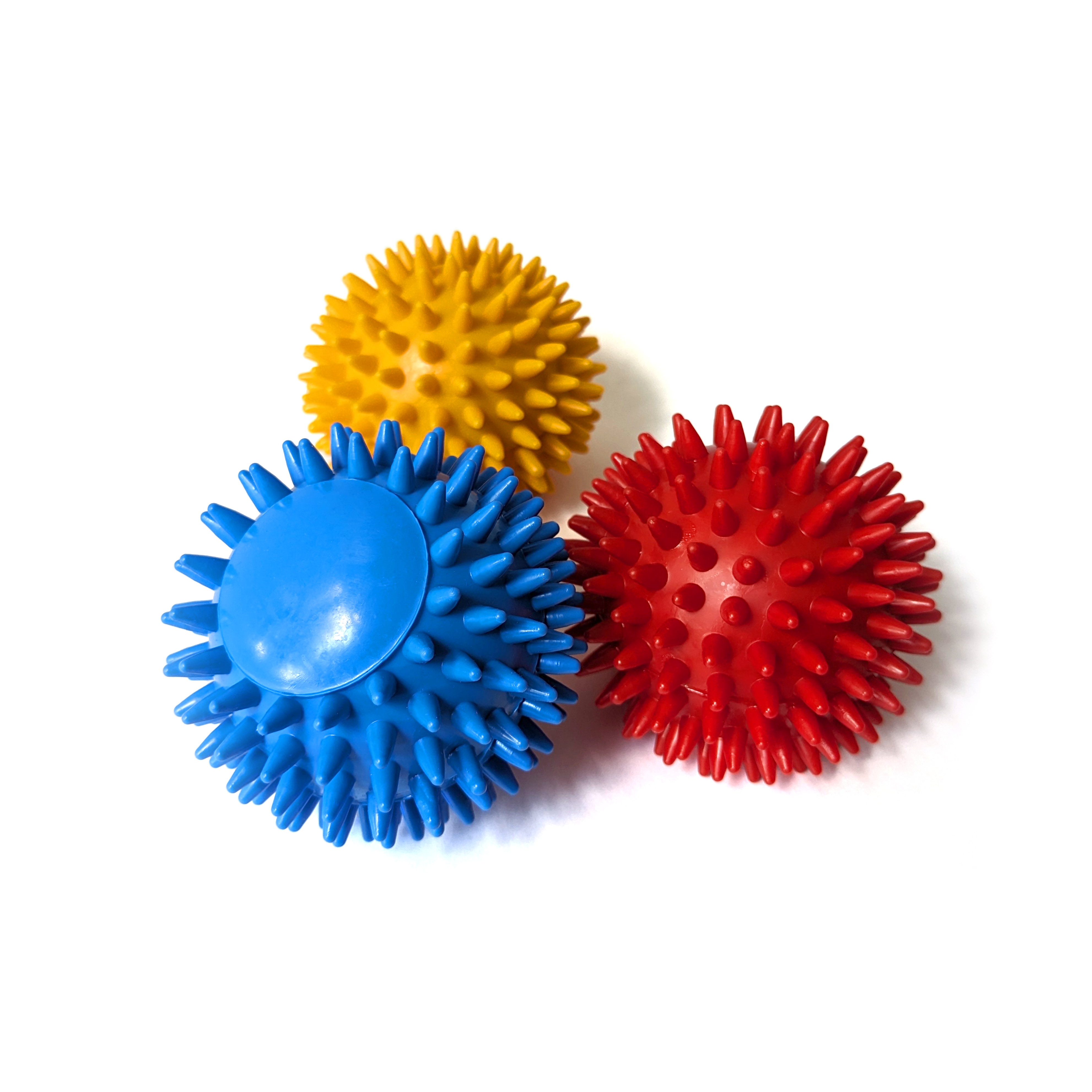 Igelbälle zur entspannenden Massage, zur Sensibilisierung von Körperregionen und für therapeutische Greifübungen. Der Igelball kann auf einem runden Druck-/Prägefeld veredelt werden.