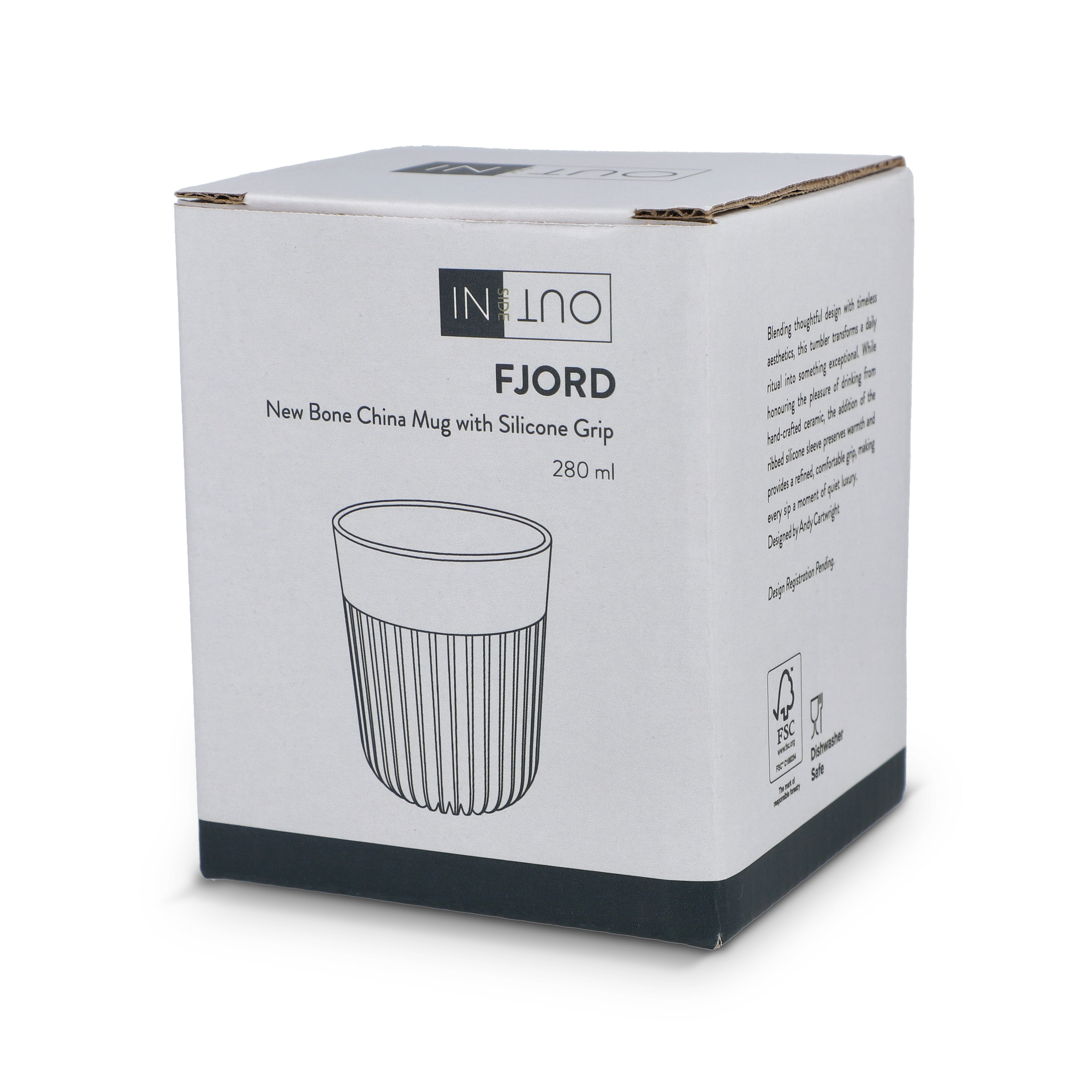 Der InSideOut All Black Premium-Becher Fjord aus Bone China hat eine exklusive gerippte Silikonhülle, die isoliert und schützt. Von Andy Cartwright entworfen, verkörpert er Eleganz und Luxus. Passend für die meisten Kaffeemaschinen, spülmaschinenfest und perfekt für den täglichen Gebrauch.