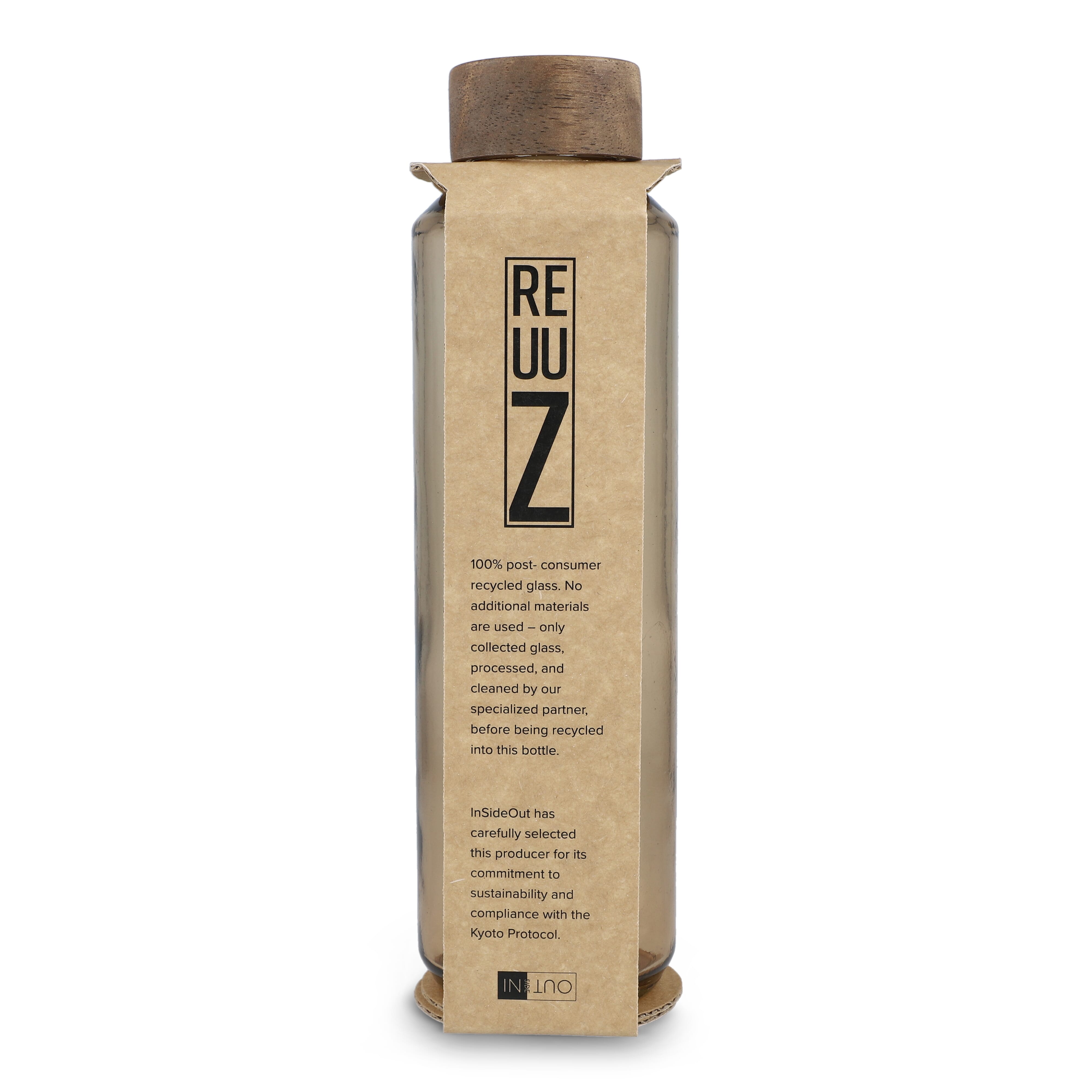 Die InSideOut ReuuZ-Flasche wird in Europa aus 100 % recyceltem Altglas gefertigt, mit FSC-Holzverschluss. Glas und Holz verleihen ihr ein natürliches Aussehen. Ideal beim Abendessen oder am Schreibtisch, um Wasser stets griffbereit zu haben. Eine bewusste Wahl für Nachhaltigkeit.
