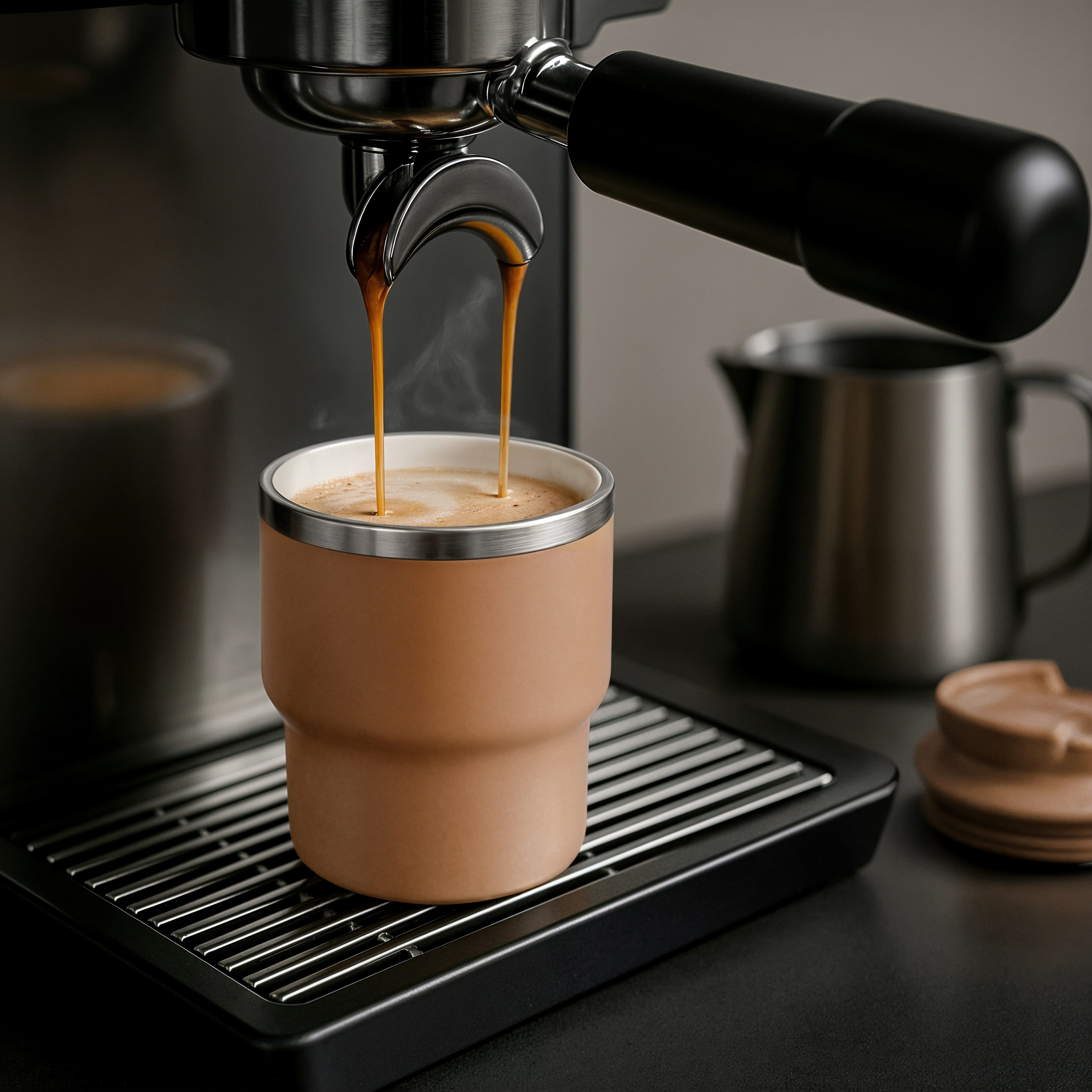 Die T-mug ist der Ort, an dem Nachhaltigkeit auf Stil trifft. Hergestellt aus recycelten Materialien, hält diese doppelwandige isolierte Becher Ihre Getränke bis zu 4 Stunden lang warm und bis zu 8 Stunden lang kalt. Mit einer perfekten Größe von 280ml passt sie nahtlos unter Ihre Kaffeemaschine. Die innovative keramische Beschichtung im Inneren sorgt dafür, dass Ihr Getränk seinen wahren Geschmack behält, ohne einen metallischen Nachgeschmack zu hinterlassen. Egal ob zu Hause, bei der Arbeit oder unterwegs, verbessern Sie Ihr Trinkerlebnis mit dieser kompakten Schönheit. Verpackt in einer Geschenkbox. Die GRS-Zertifizierung gewährleistet eine vollständig zertifizierte Lieferkette des recycelten Materials, und der Gesamtgehalt an recyceltem Material beträgt 95%, bezogen auf das Gewicht des Artikels.