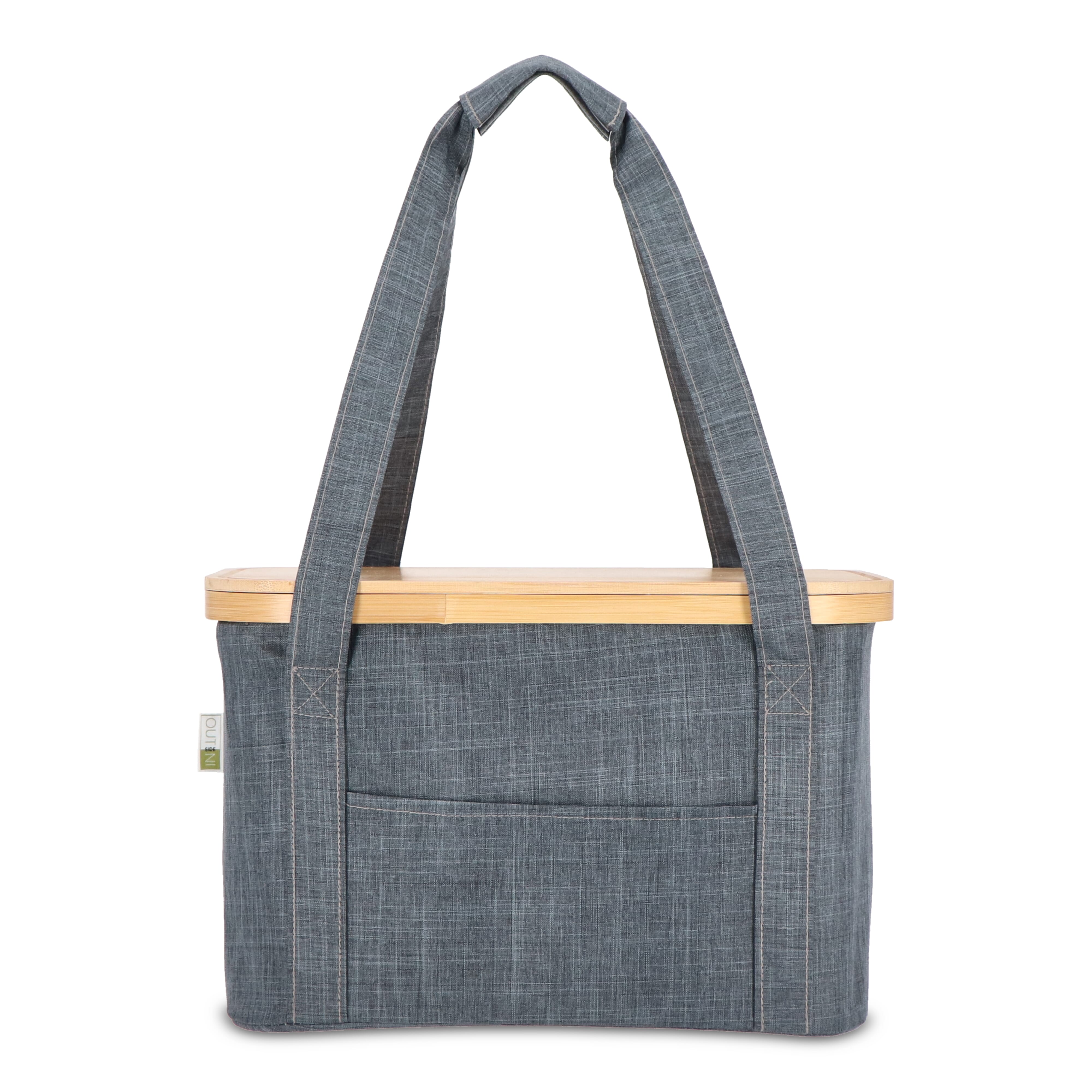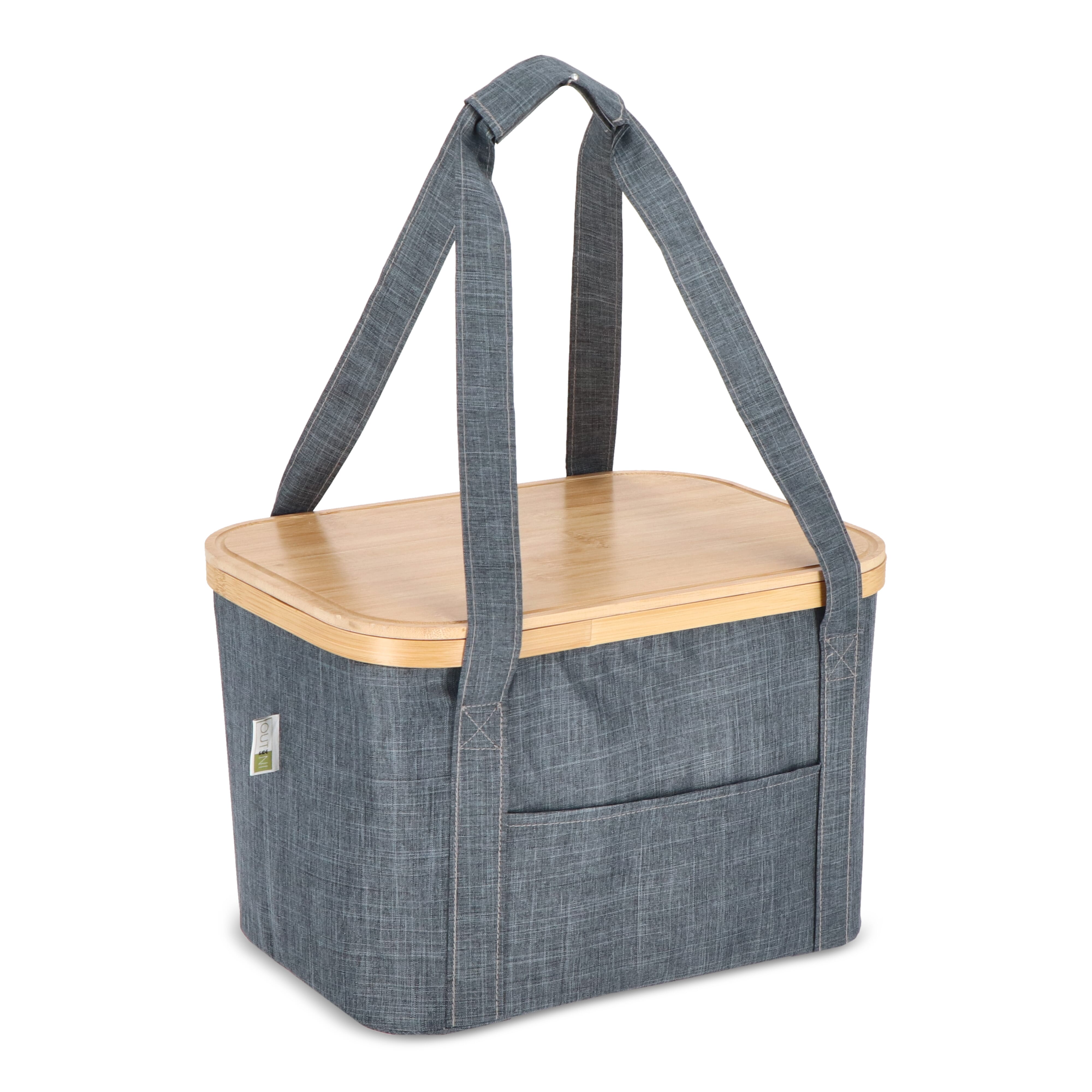 Der faltbare (Kühl-)Korb Sogne von InSideOut ist mehr als eine stilvolle Aufbewahrungslösung: Er ist eine vielseitige Kühltasche, ideal für Outdoor-Aktivitäten. Hergestellt aus recycelten Materialien und Bambus, bietet dieser Sogne auch praktische Funktionalität. Im Inneren befindet sich eine passende Kühltasche mit Griff und Isolierfolie, so dass der Korb auch als Kühltasche verwendet werden kann, um Speisen und Getränke kühl zu halten. Der Korb hat einen Deckel aus Bambus, der auch als Schneidebrett dienen kann, und ist mit praktischen Vorder- und Rückentaschen für zusätzlichen Stauraum ausgestattet. Dank der stabilen Griffe können Sie den Korb überallhin mitnehmen, mit oder ohne Kühltasche. Sowohl der Korb als auch die Kühltasche sind faltbar, was bei Nichtgebrauch Platz spart. Sowohl die Vordertasche als auch der Bambusdeckel bieten Platz für den Aufdruck oder die Gravur eines Logos. Kurzum, Sogne vereint Stil, Funktionalität und Multifunktionalität in einem intelligenten und nachhaltigen Design.