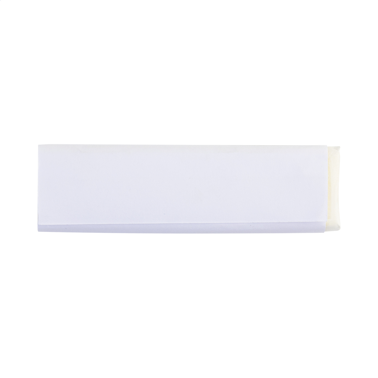 Eine Packung individuell hergestellter, rechteckiger Fruchtbonbons (7,5 Gramm). Der Preis ist inkl. vollfarbig bedruckten Papierhülle. Mindestmenge: 100 Stk.