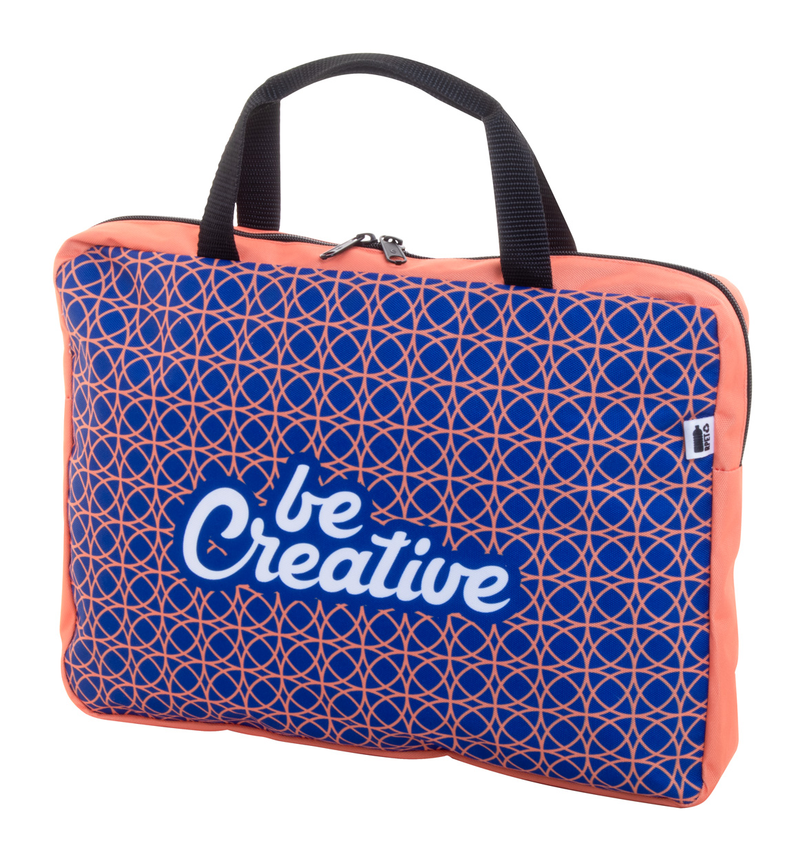 Individuelle Dokumententasche mit Reißverschlusstasche aus 600D RPET-Polyester, mit Laptopfach (15"). Der Preis ist inklusive vollfarbigem vollflächigem Sublimationsdruck. Mindestbestellmenge: 25 Stk. Mit RPET-Label.