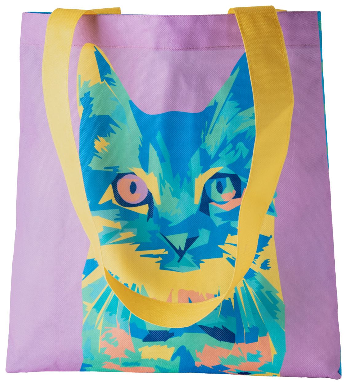 Individuelle Einkaufstasche aus Non-Woven (80 g / m²) mit langen Henkeln. Der Preis ist inkl. vollflächigem Sublimationsdruck. Mindestmenge: 25 Stk.