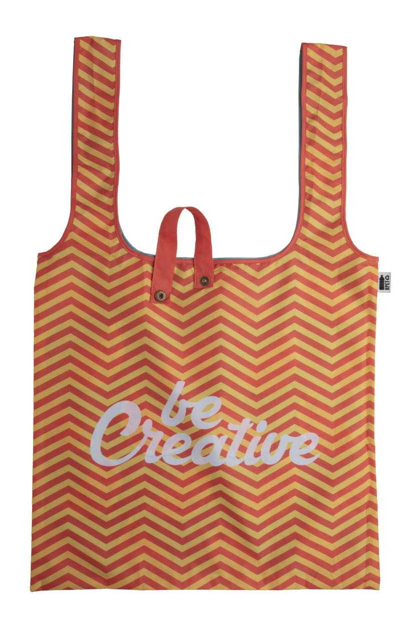 Individuelle, faltbare Einkaufstasche aus 190T RPET-Polyester. Der Preis ist inkl. vollflächigem Sublimationsdruck auf beiden Seiten. Mindestmenge: 25 Stk. Mit RPET-Label.