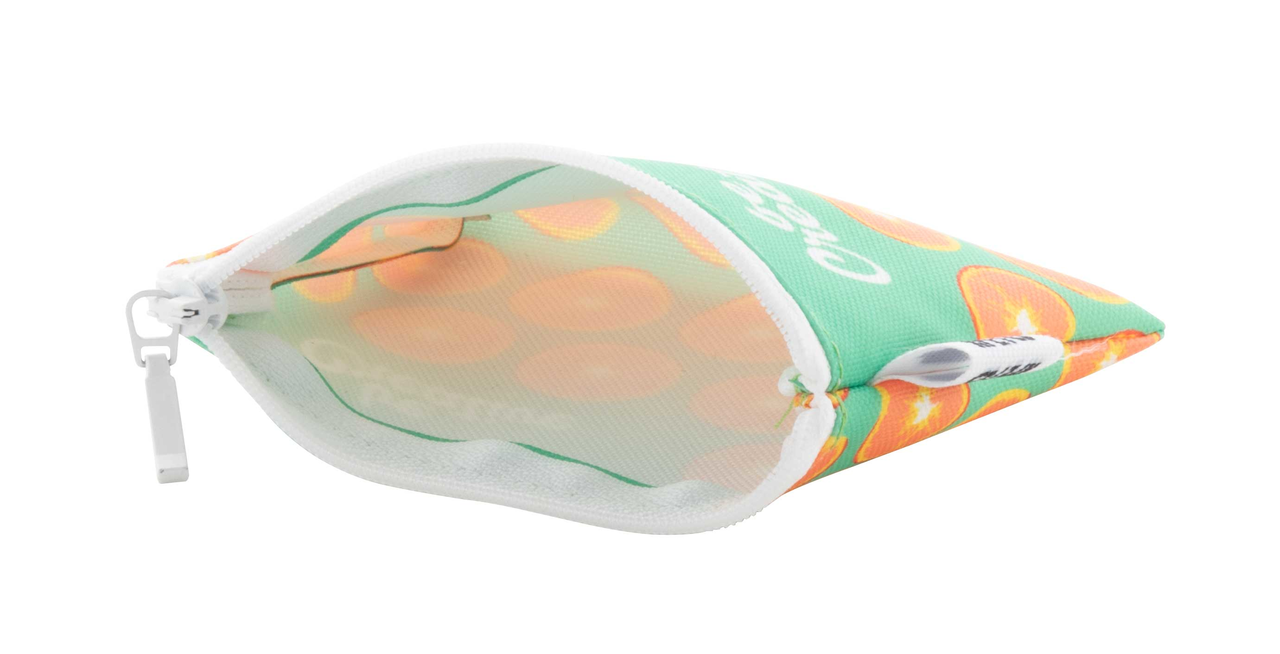 Individuelle Geldbörse mit Reißverschluss, Material: 600D RPET Polyester. Der Preis ist inkl. Sublimationsdruck und RPET-Label. Mindestmenge: 50 Stk.