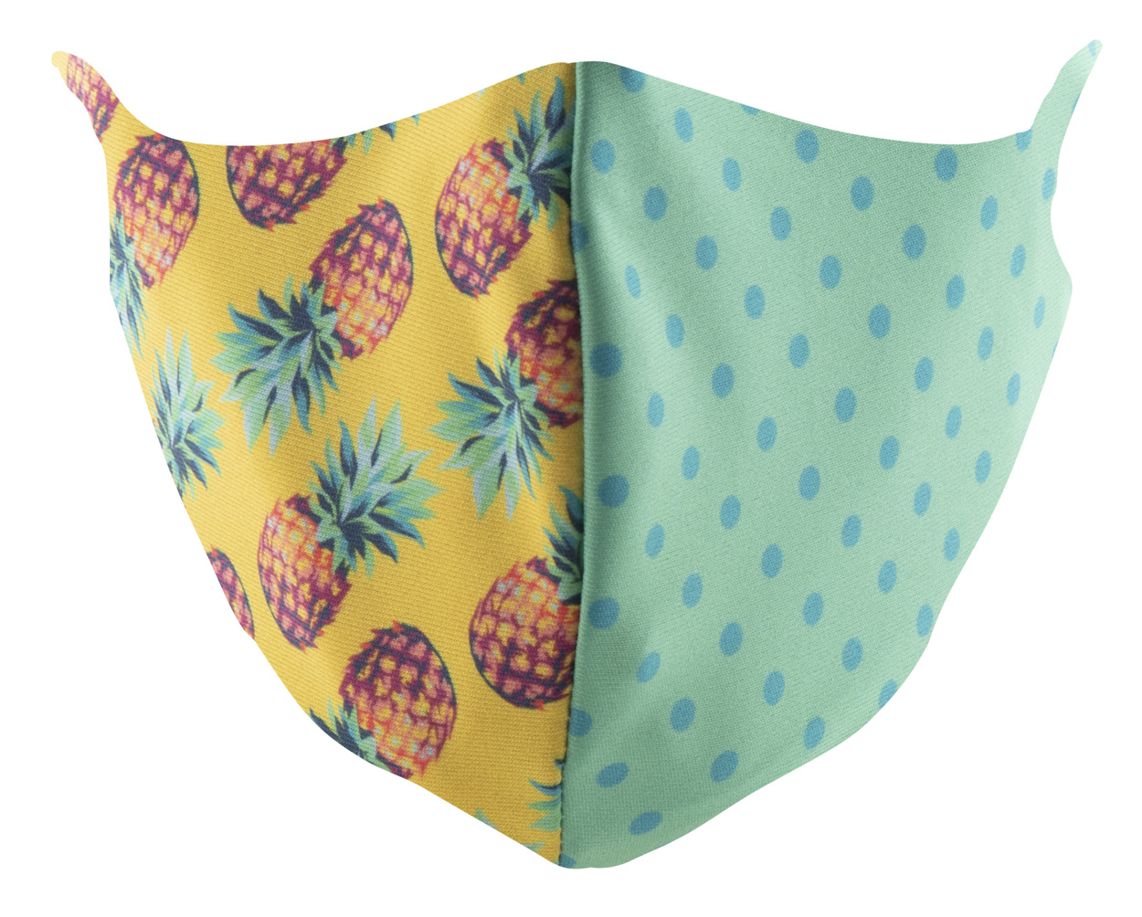 Individuelle, waschbare und wiederverwendbare Gesichtsmaske (zweilagig) mit verstellbaren elastischen Ohrschlaufen und Sublimationsdruck. Erwachsenen-Größe. Material: 100% Polyester (140g / m²) and 100% Baumwolle (140g / m²). Der Preis ist inkl. Sublimationsdruck. Mindestmenge: 50 Stk. Diese Maske ist keine Schutz-Equipment und hat keine Virus-Filtereigenschaften. Es hilft aber dabei die Verbreitung des Virus einzudämmen.