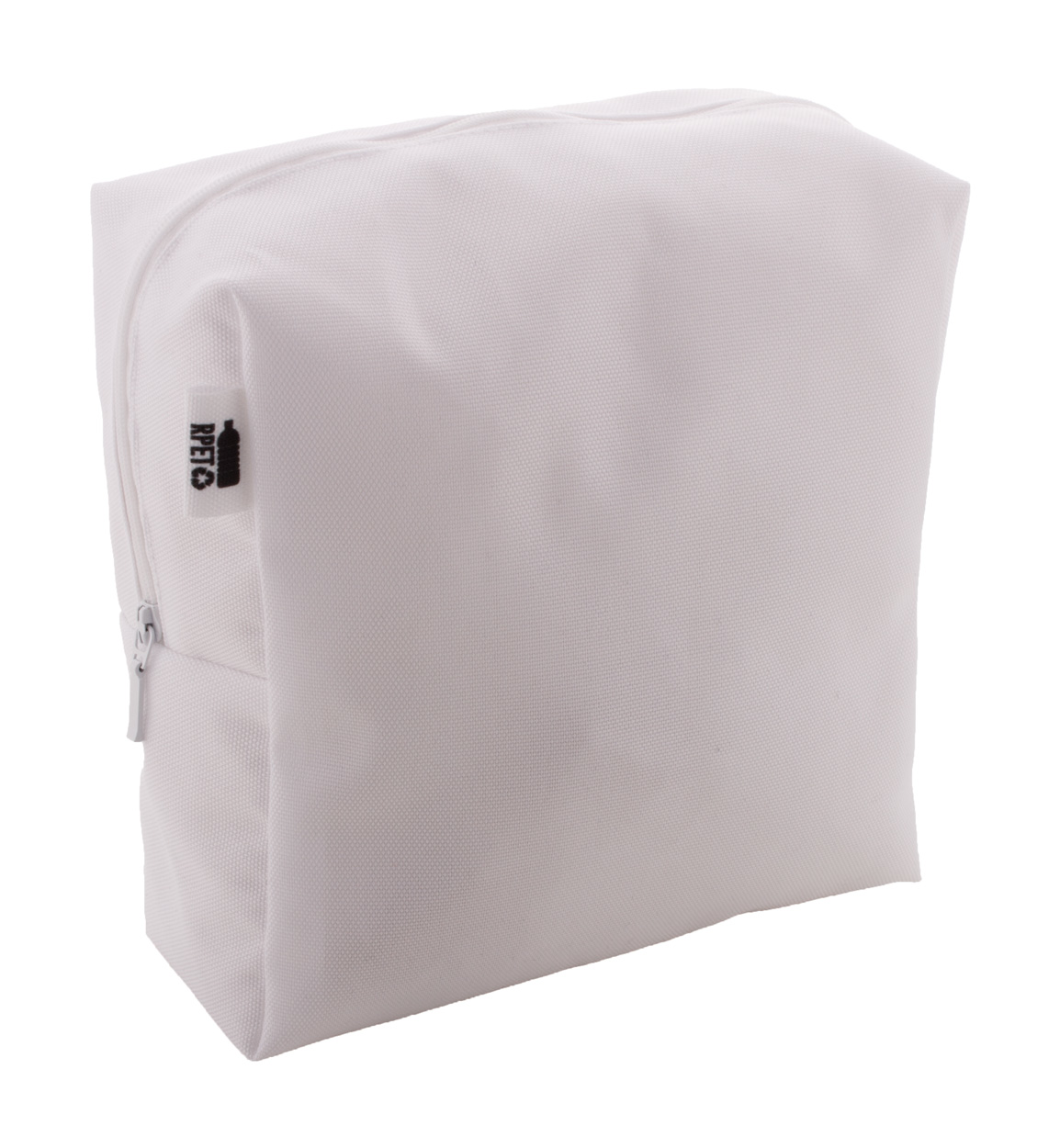 Individuelle, quadratische Reißverschluss-Kosmetiktasche aus 600D RPET Polyester mit vollflächigem Sublimationsdruck. Mindesmenge: 50 Stk.