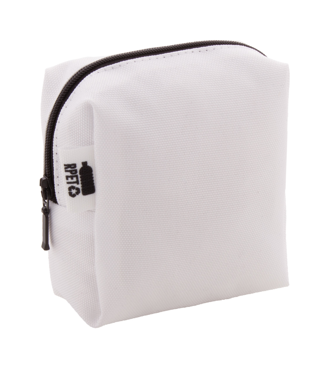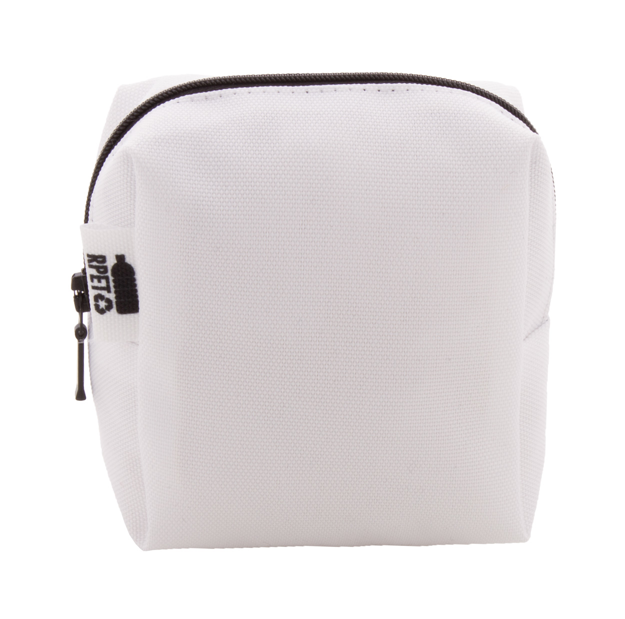 Individuelle, quadratische Reißverschluss-Kosmetiktasche aus 600D RPET Polyester mit vollflächigem Sublimationsdruck. Mindesmenge: 50 Stk.