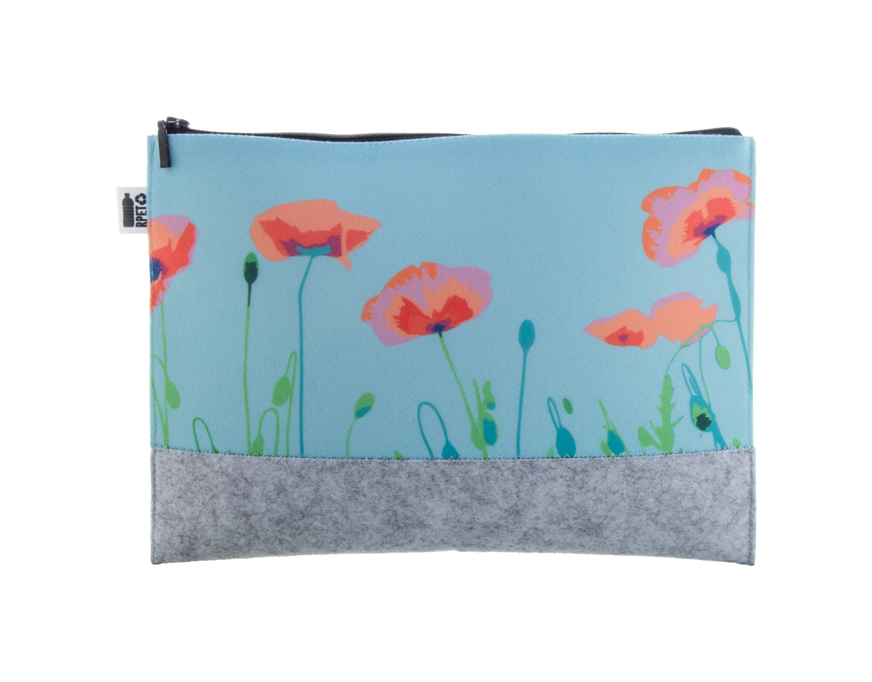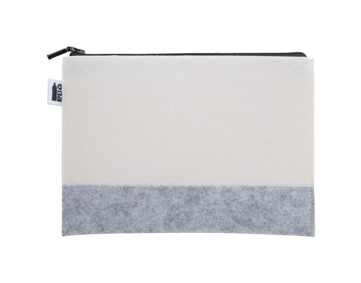 Individuelle Kosmetiktasche mit Reißverschluss aus RPET-Filz, mit vollflächigem Sublimationsdruck. Mit RPET-Label. Mindestbestellmenge: 50 Stk