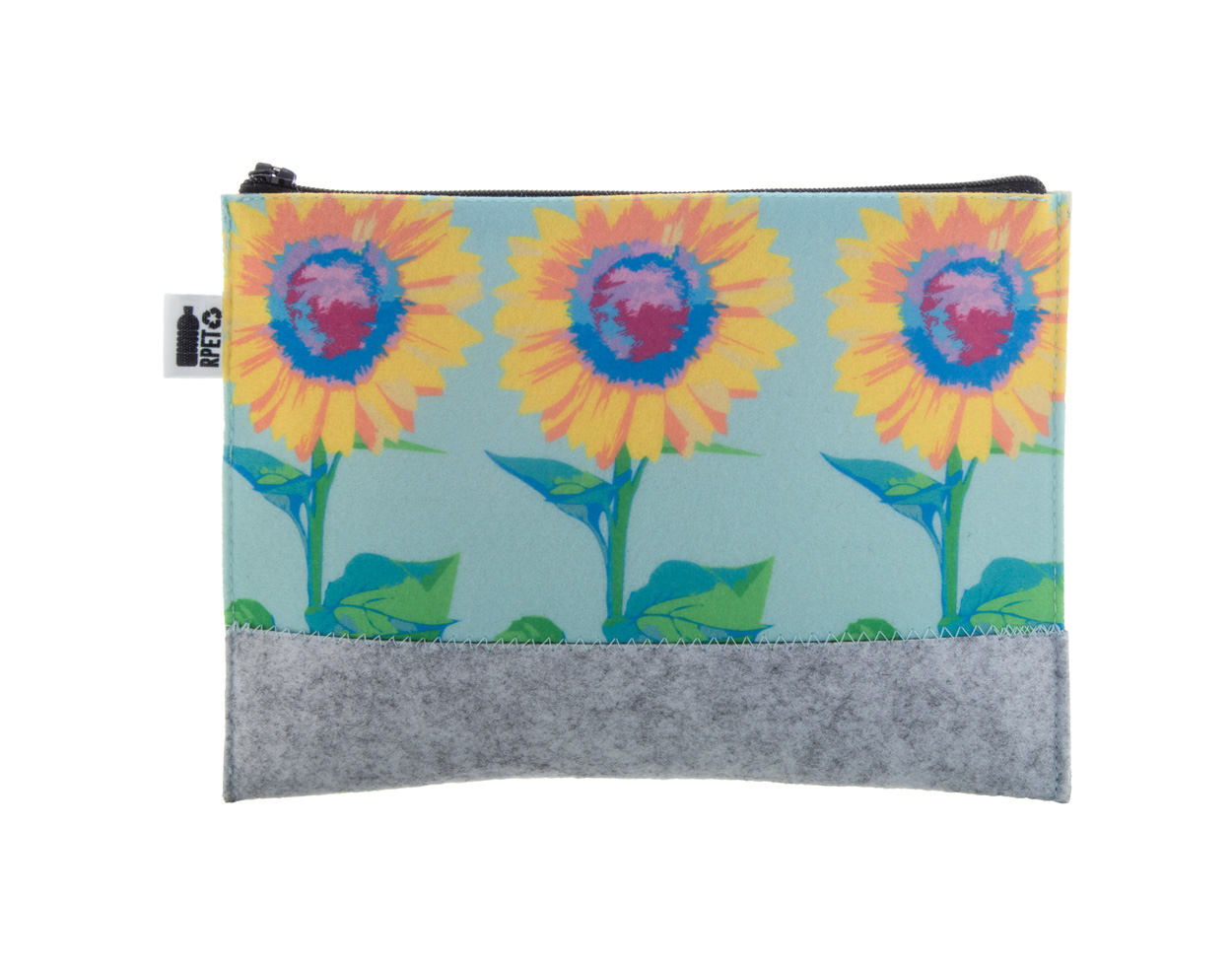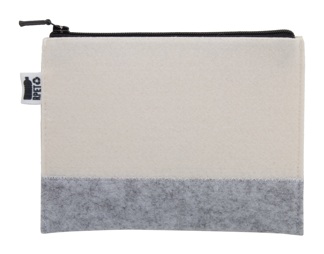 Individuelle Kosmetiktasche mit Reißverschluss aus RPET-Filz, mit vollflächigem Sublimationsdruck. Mit RPET-Label. Mindestbestellmenge: 50 Stk