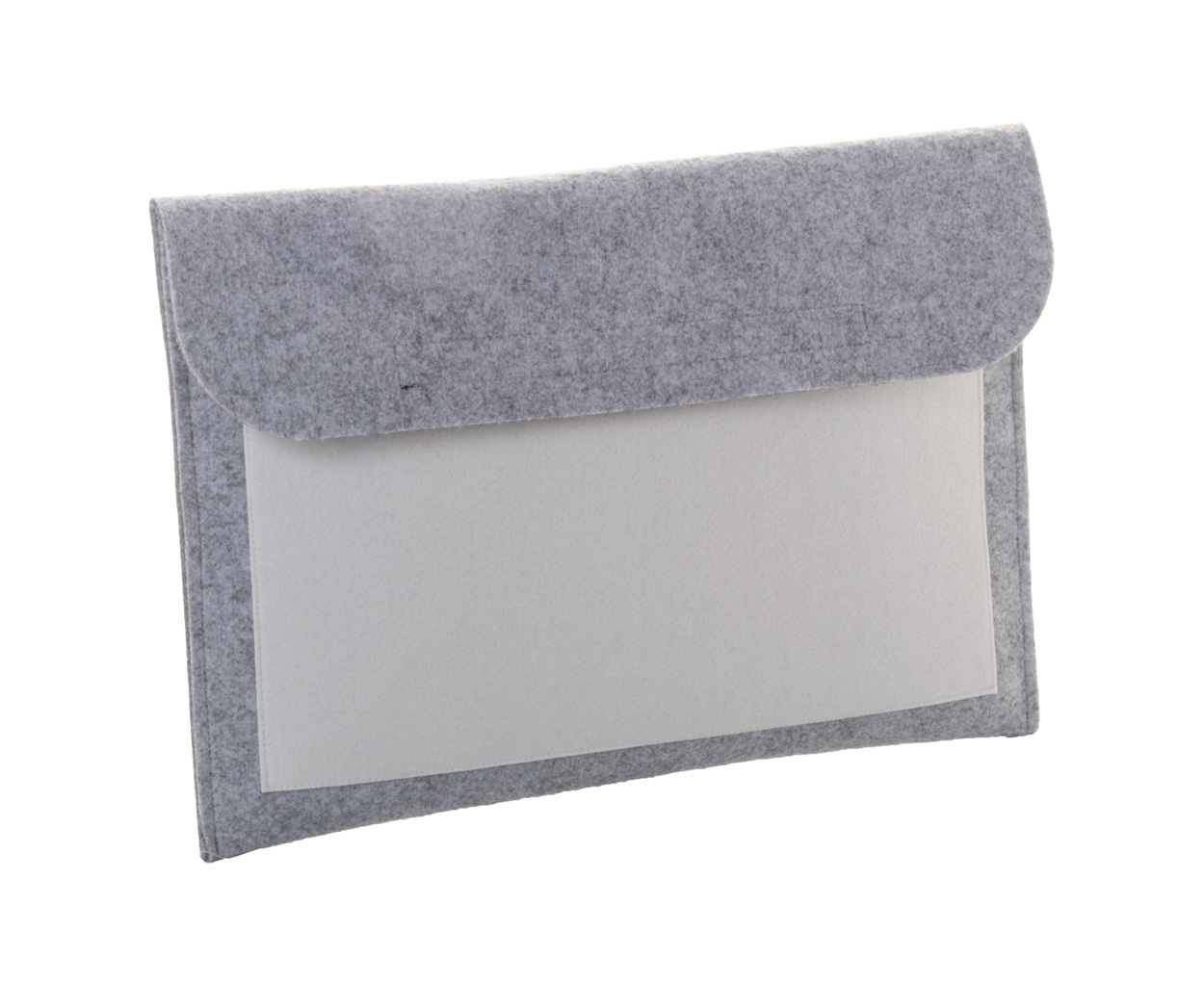 Individuelle Laptoptasche aus RPET Filz mit vollfarbig bedruckter Vordertasche, Klettverschluss und RPET-Label. Passend für Laptops von bis zu 15". Der Preis ist inklusive dem Sublimationsdruck. Mindestmenge: 25 Stk.