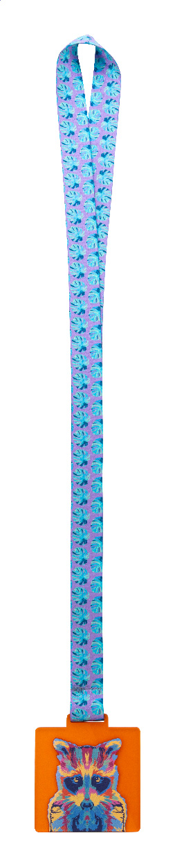 Individuelle, quadratische Medaille aus Acryl mit vollflächiger Bedruckung auf der Medallie sowie Sublimationsdruck auf dem RPET-Lanyard. Der Preis ist inklusive Sublations- und UV LED-Druck. Mindestmenge: 100 Stk.
