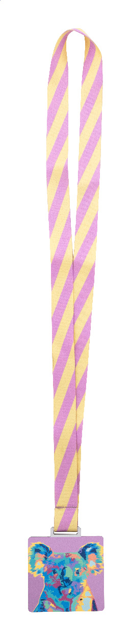 Individuelle, quadratische Medaille aus gebürstetem Aluminiumverbund mit vollflächiger Bedruckung auf der Medallie sowie Sublimationsdruck auf dem RPET-Lanyard. Der Preis ist inklusive Sublations- und UV LED-Druck. Mindestmenge: 100 Stk.