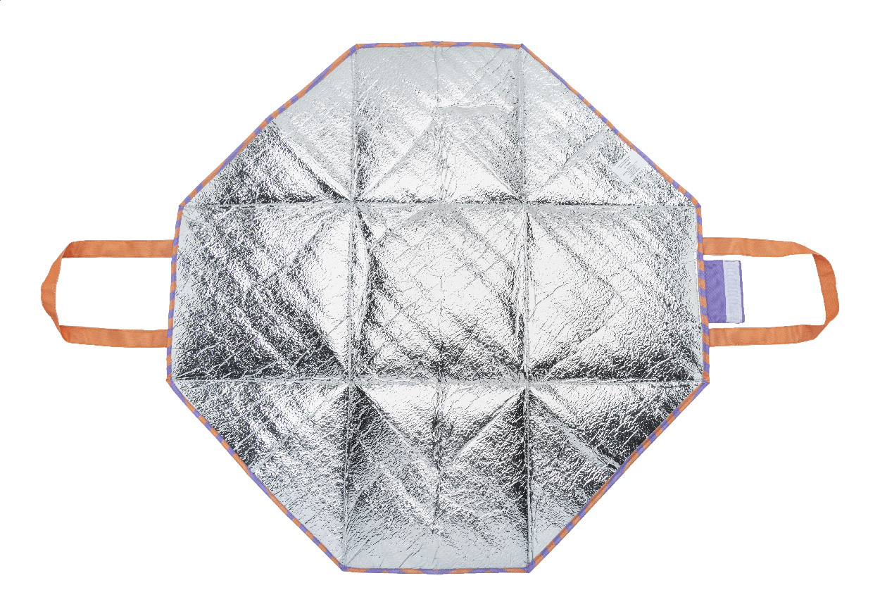 Individuelle Kühltasche aus 600D RPET-Polyester mit Aluminiumpolsterung, Klettverschluss und langen Tragegriffen. Kann auch als Korb verwendet werden und lässt sich zu einer Picknickdecke ausklappen. Mit vollflächigem Sublimationsdruck. Mit RPET-Label. Mindestmenge: 25 Stk.