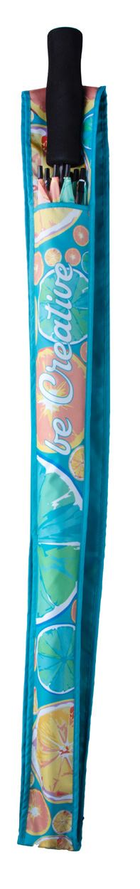 Individuelle Schirm-Tragehülle mit Schultergurt für Stockschirme. Material: 190T Pongee. Der Preis ist inkl. Sublimationsdruck. Mindestmenge: 50 Stk.