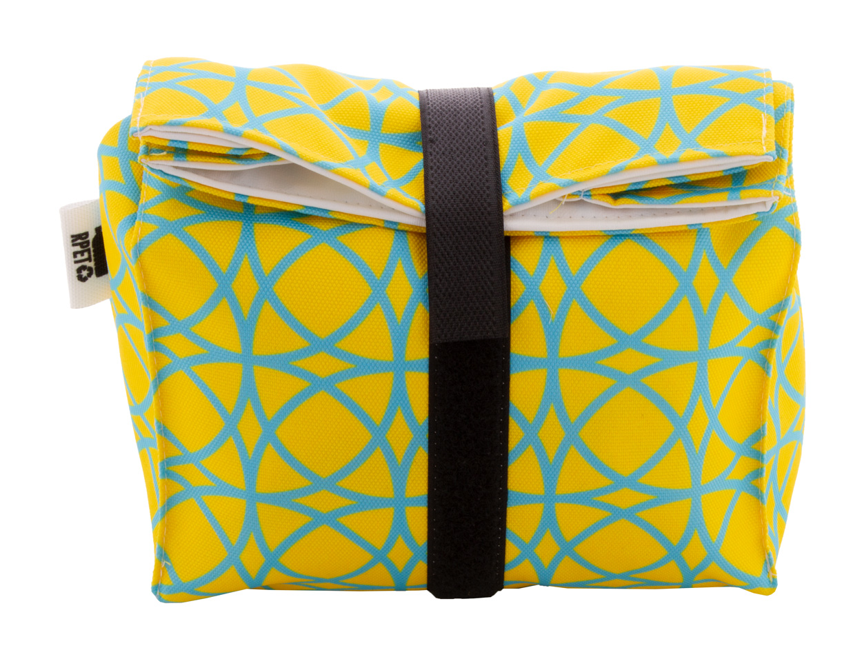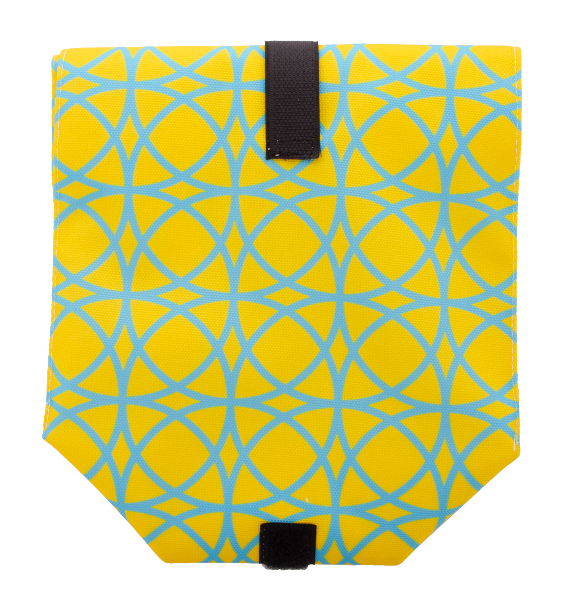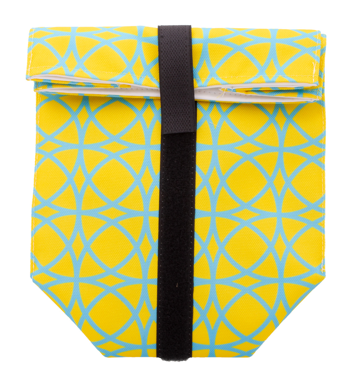 IIndividuelle wiederverwendbare Rolltop-Snacktasche aus 600D RPET Polyester mit strapazierfähigem wasserdichtem Futter und Klettverschluss. Ideal zum Einwickeln von Snacks oder Sandwiches. Der Preis ist inkl. vollflächigem Sublimationsdruck. Mindestmenge: 25 Stk.