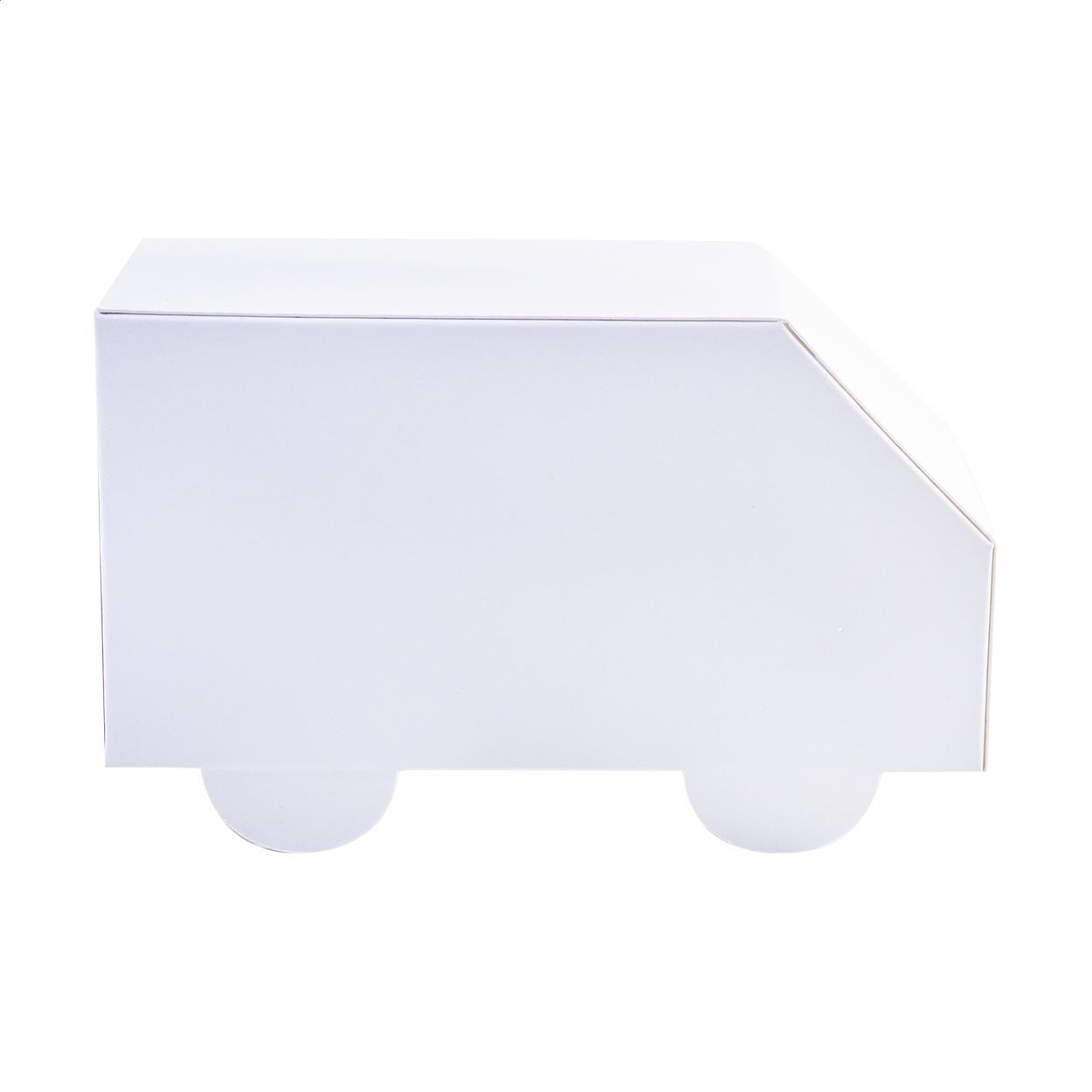 Individuelle Süßigkeitenbox in LKW-Form mit vollflächigem Digitaldruck. Gefüllt mit 40 Gramm einzeln verpackten Fruchtbonbons. Mindestmenge: 100 Stk.