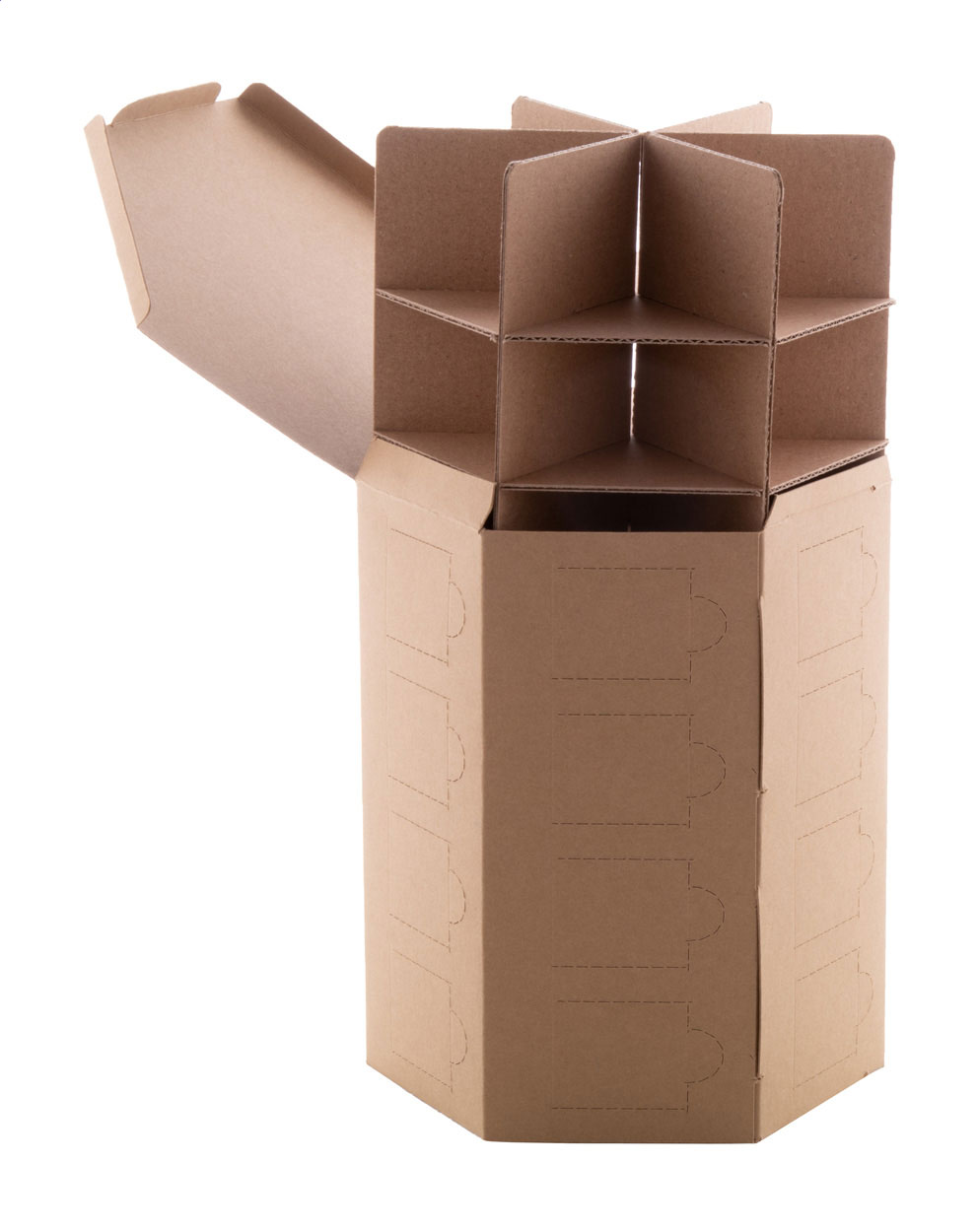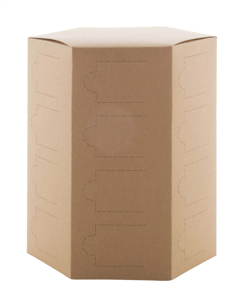 Individueller vollfarbig bedruckter sechseckiger Adventskalender aus Krafpapier mit 24 Fächern, ohne Inhalt. Die Lieferung erfolgt flach verpackt. Mindestbestellmenge: 50 Stk.