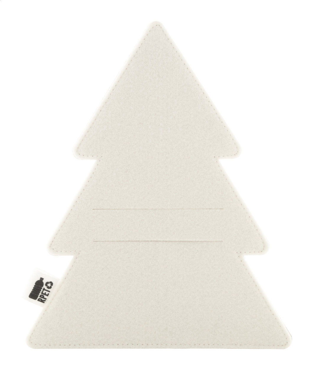 Individueller RPET Besteckhalter in Weihnachtsbaumform mit vollfarbiger Bedruckung auf der Vorderseite und RPET-Label. Der Preis ist inklusive Sublimationsdruck. Mindestmenge: 50 Stk.