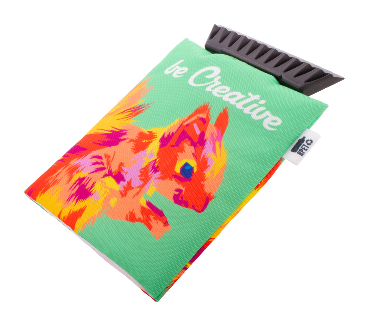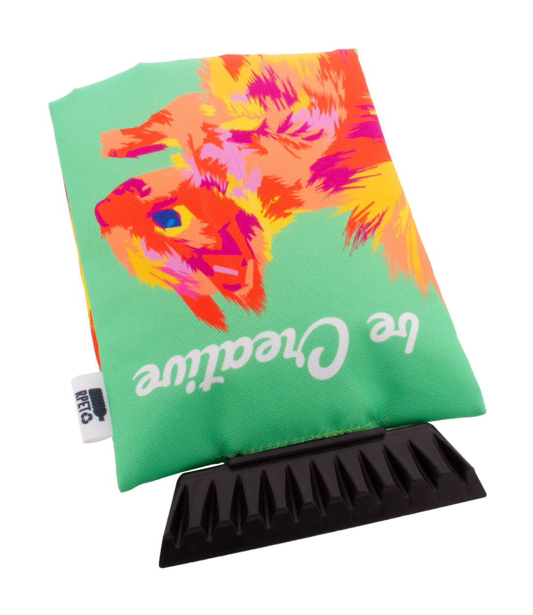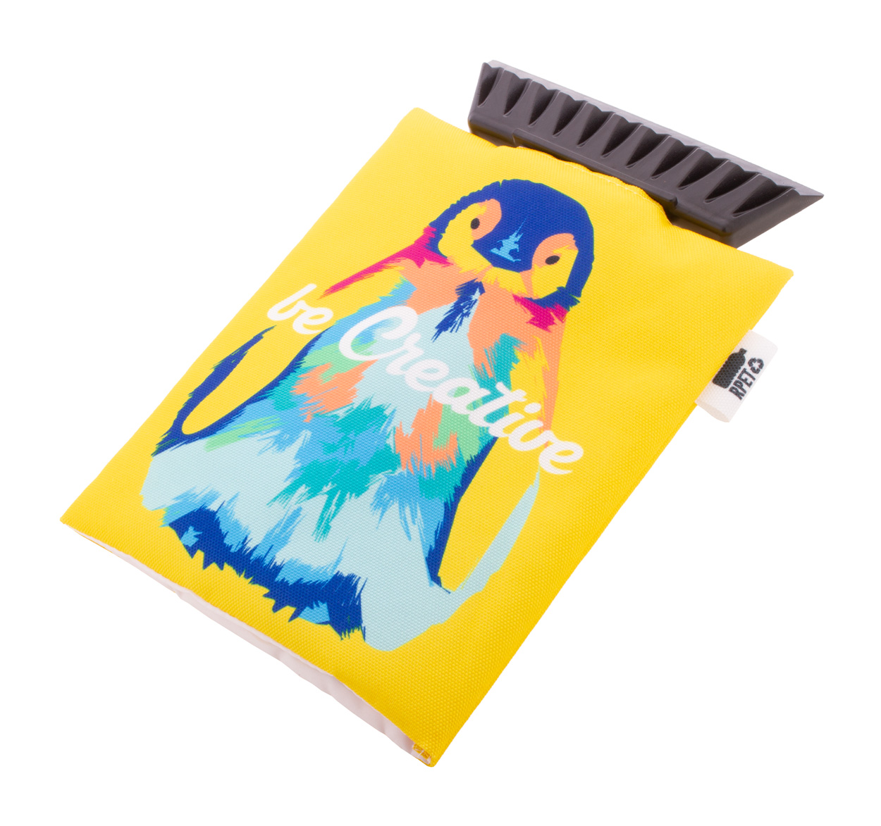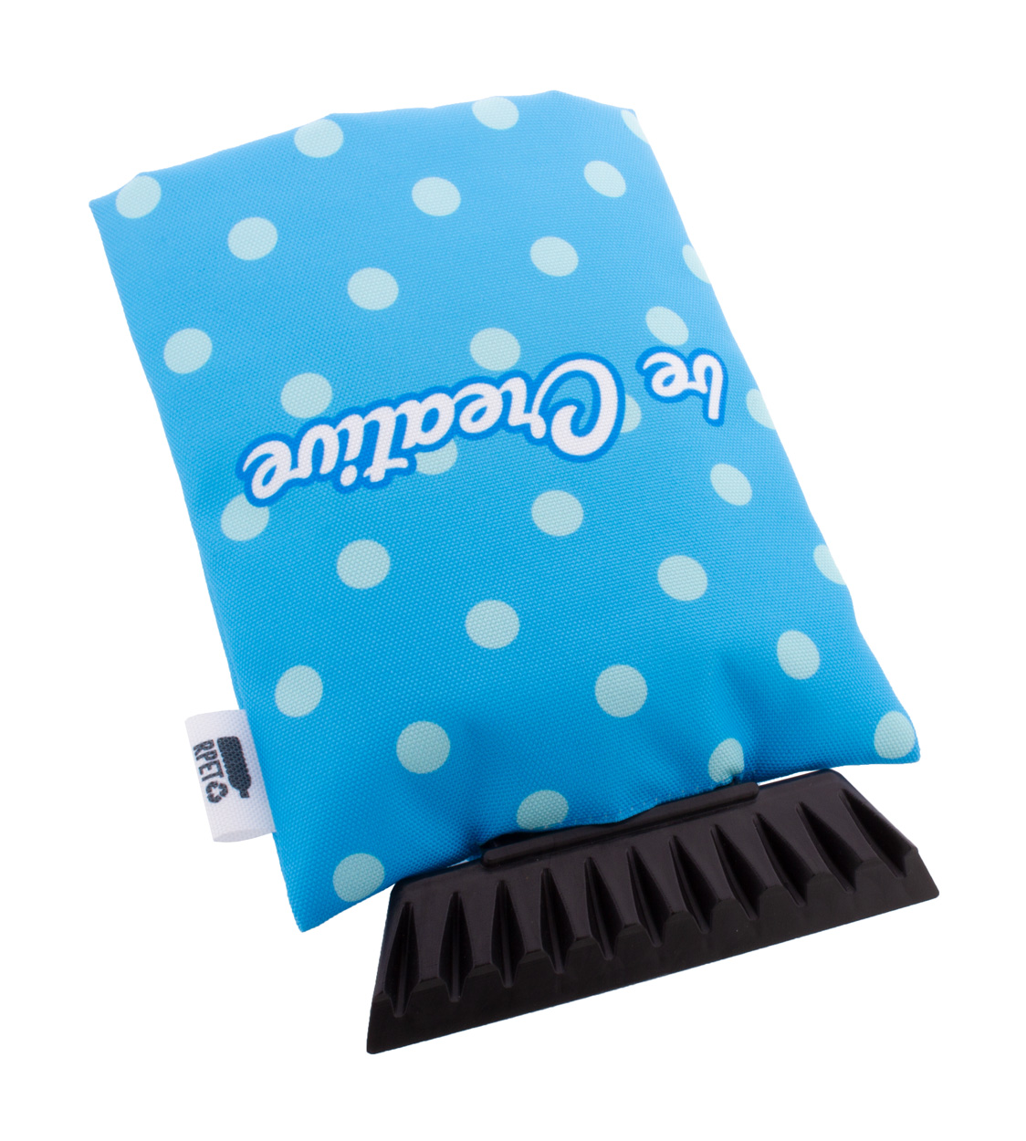 Individueller Eiskratzer aus Kunststoff mit Handschuh aus 600D RPET-Polyester. Der Preis ist inkl. vollflächigem Sublimationsdruck und RPET-Label. Mindestmenge: 50 Stk.
