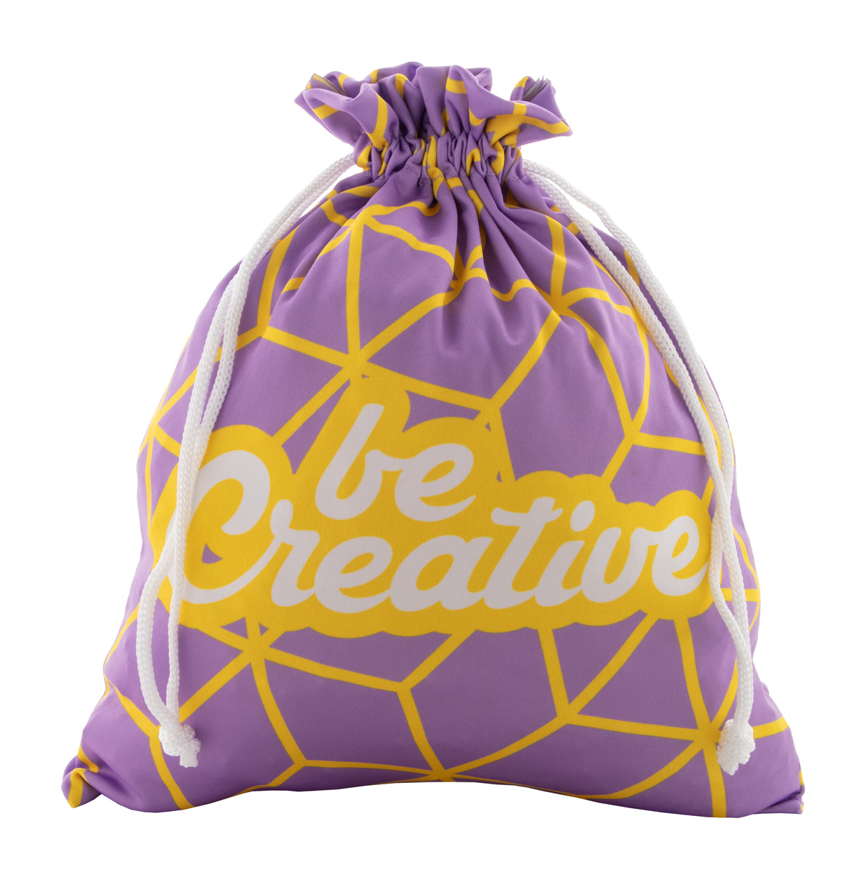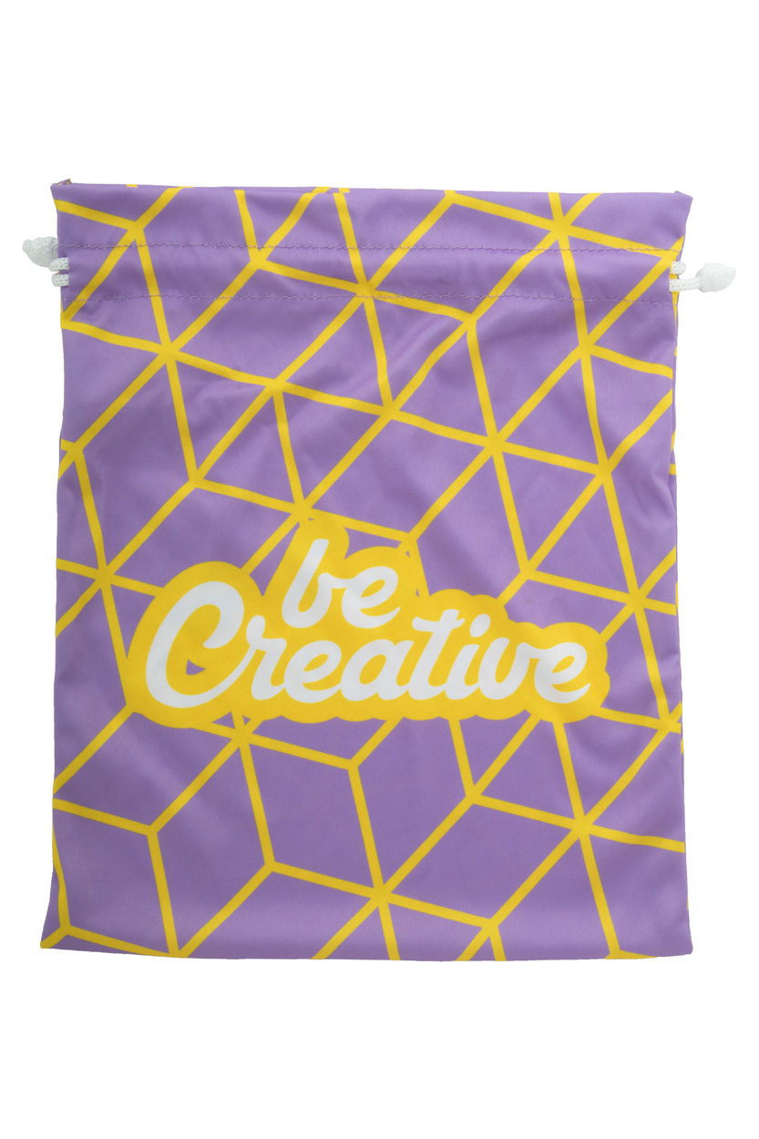 Individuell gestalteter großer Geschenkbeutel mit Kordelzug und farbiger Schnur.