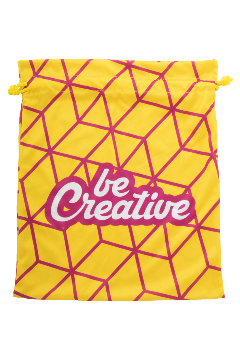 Individuell gestalteter großer Geschenkbeutel mit Kordelzug und farbiger Schnur.