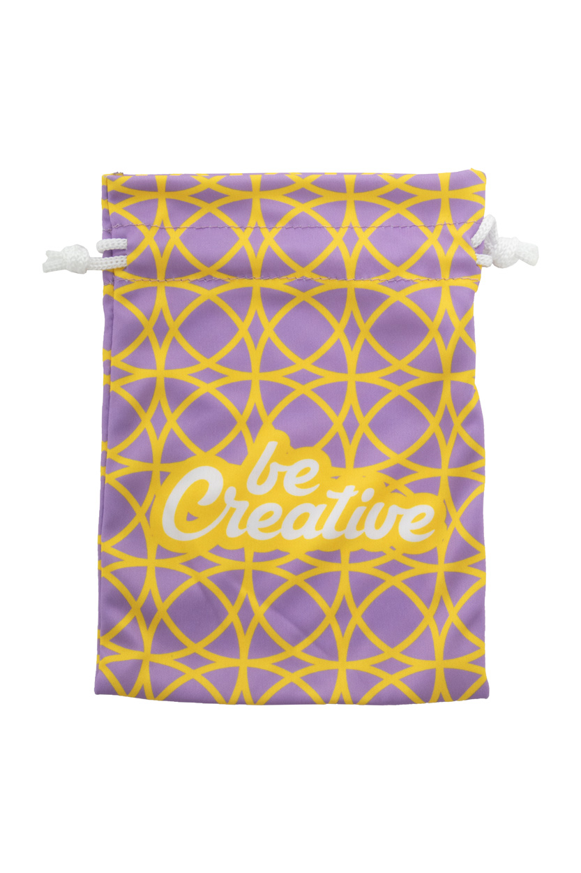 Individuell gestalteter mittelgroßer Kordelzug-Geschenkbeutel mit farbiger Schnur.