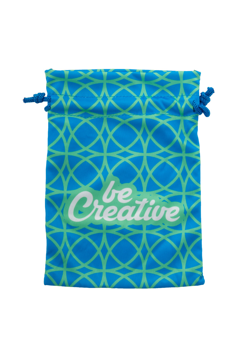 Individuell gestalteter mittelgroßer Kordelzug-Geschenkbeutel mit farbiger Schnur.