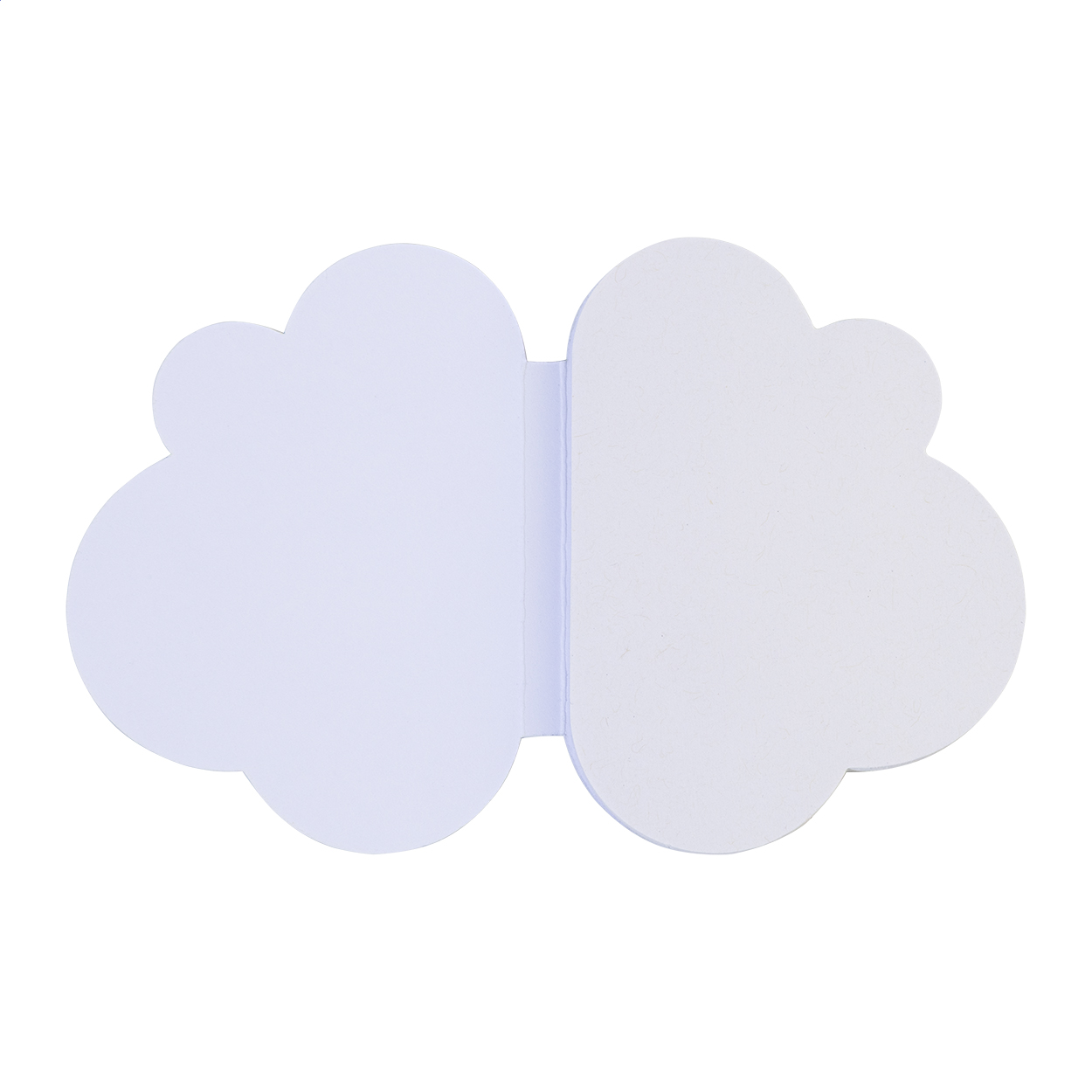 Individueller, papierbezogener Haftnotizblock in Wolken-Form. Enthält 50 Blatt Haftnotizen aus Recyclingpapier. Der Preis ist inkl. DIgitaldruck auf der Außenseite. Mindestmenge: 100 Stk.