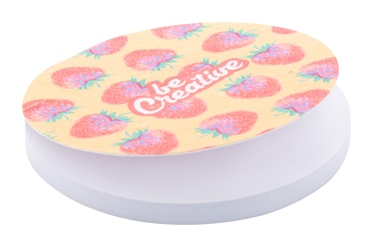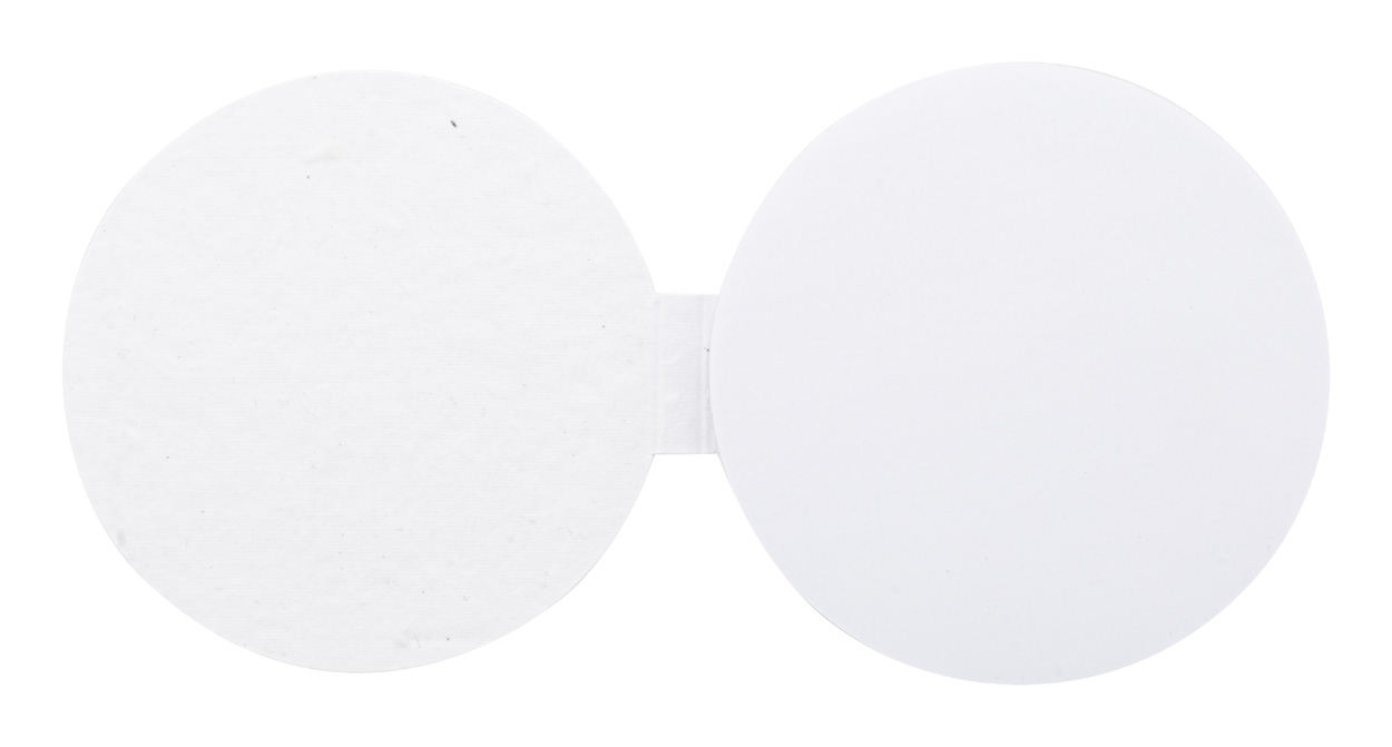 Individueller, runder Haftnotizblock aus Samenpapier (mit sortierten Wildblumensamen). Beinhaltet 50 Haftnotizen aus Recyclingpapier. Der Preis beinhaltet einen vollfarbigen Druck auf der Cover-Außenseite. Mindestmenge: 100 Stk.