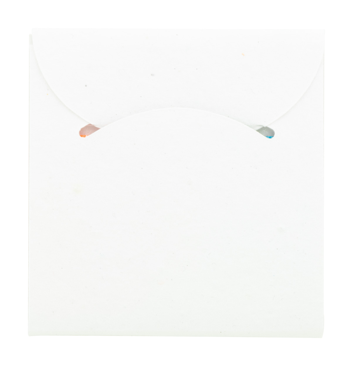 Individueller Haftnotizblock mit Umschlag aus Samenpapier (mit sortierten Wildblumensamen). Beinhaltet 50 Blatt Haftnotizen aus Recyclingpapier (75 x 75mm) und 100 Filmmarker in 5 unterschiedlichen Farben (12 x 44mm). Der Preis beinhaltet einen vollfarbigen Druck auf der Cover-Außenseite. Mindestmenge: 100 Stk.