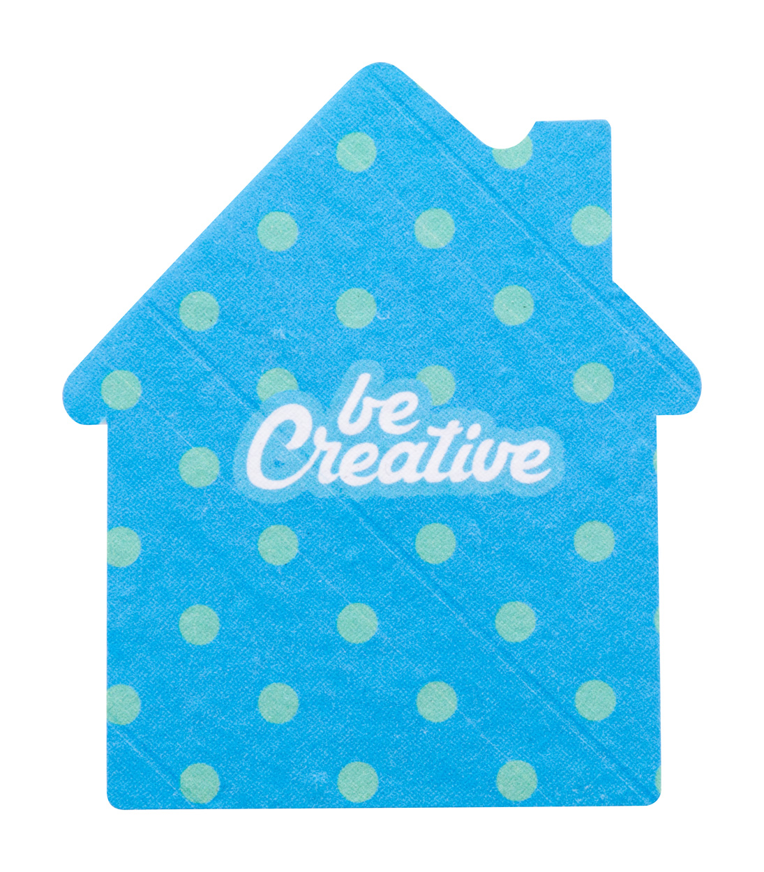 Individueller, hausförmiger Haftnotizblock aus Samenpapier (mit sortierten Wildblumensamen). Beinhaltet 50 Haftnotizen aus Recyclingpapier. Der Preis beinhaltet einen vollfarbigen Druck auf der Cover-Außenseite. Mindestmenge: 100 Stk.