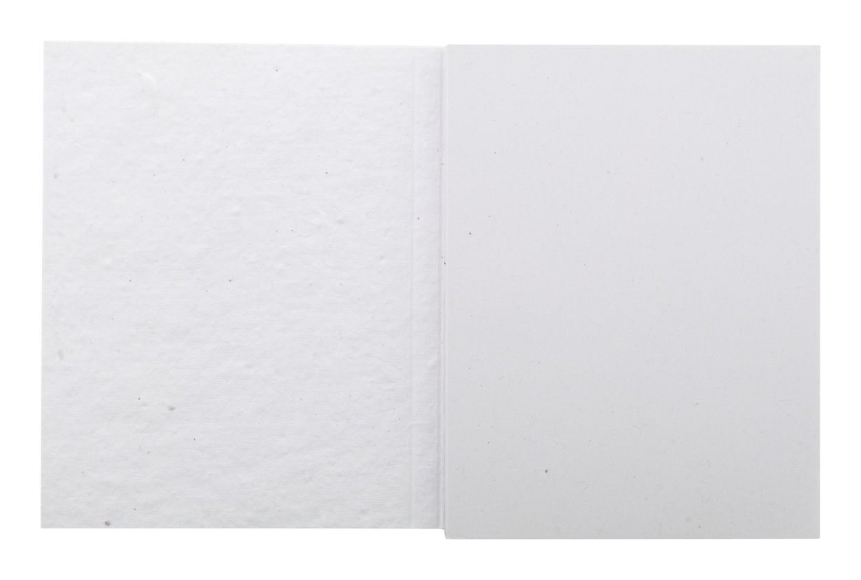 Individueller Haftnotizblock mit Umschlag aus Samenpapier (mit sortierten Wildblumensamen). Beinhaltet 50 Blatt Haftnotizen aus Recyclingpapier (100 x 75mm). Der Preis beinhaltet einen vollfarbigen Druck auf der Cover-Außenseite. Mindestmenge: 100 Stk.