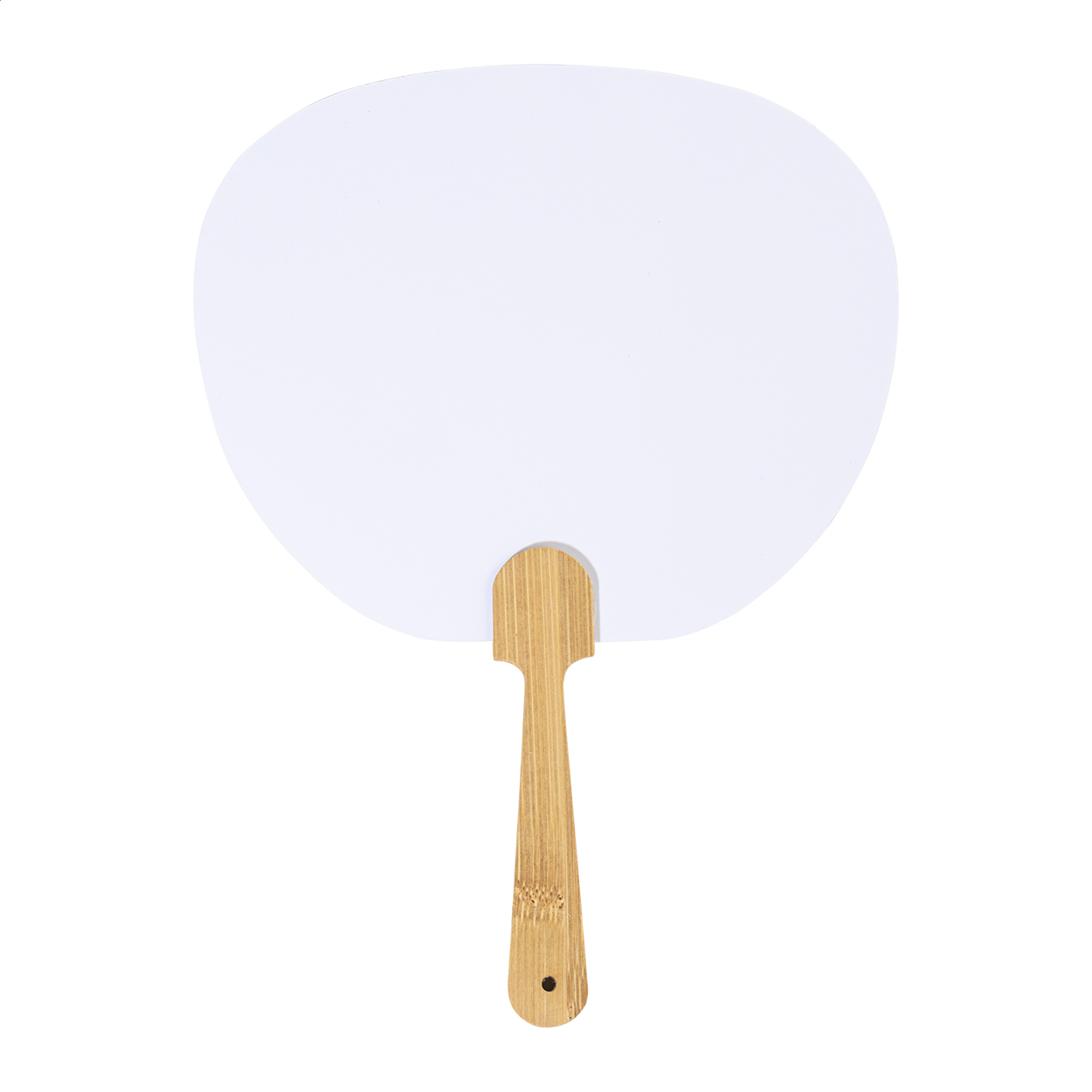 Individueller Handfächer aus laminiertem Papier mit Bambusgriff. Der Preis ist inkl. beidseitigem vollflächigem Digitaldruck. Mindestmenge: 100 Stk.
