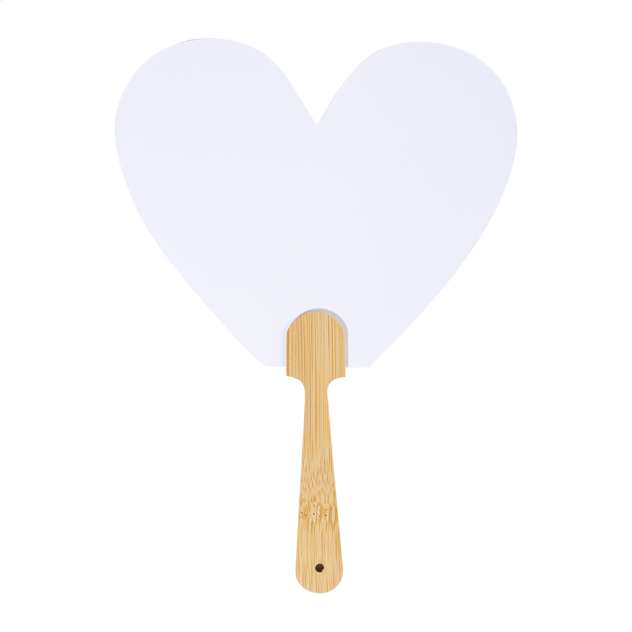 Individueller Handfächer aus laminiertem Papier mit Bambusgriff. Der Preis ist inkl. beidseitigem vollflächigem Digitaldruck. Mindestmenge: 100 Stk.