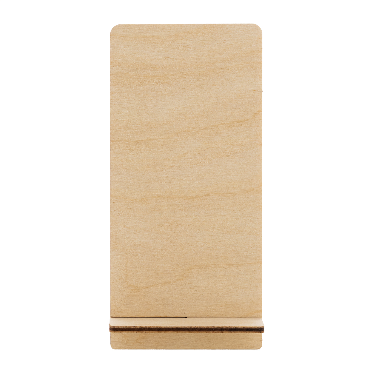 Individueller Handyhalter aus Birkenholz. Der Preis ist inkl. vollflächigem UV-LED-Druck auf der Vorderseite. Die Lieferung erfolgt flach verpackt. Mindestmenge: 50 Stk.