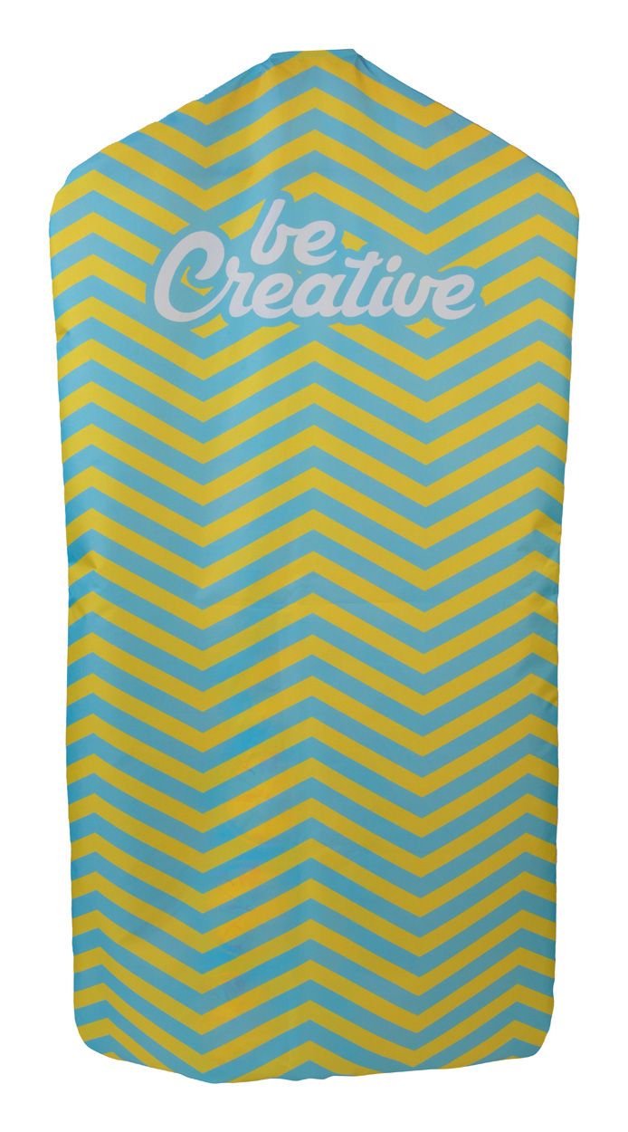 Individueller Kleidersack aus 190T RPET Polyester (mit RPET Label) mit Reißverschluss. Der Preis ist inkl. vollflächigem Sublimationsdruck. Mindesmenge: 25 Stk.